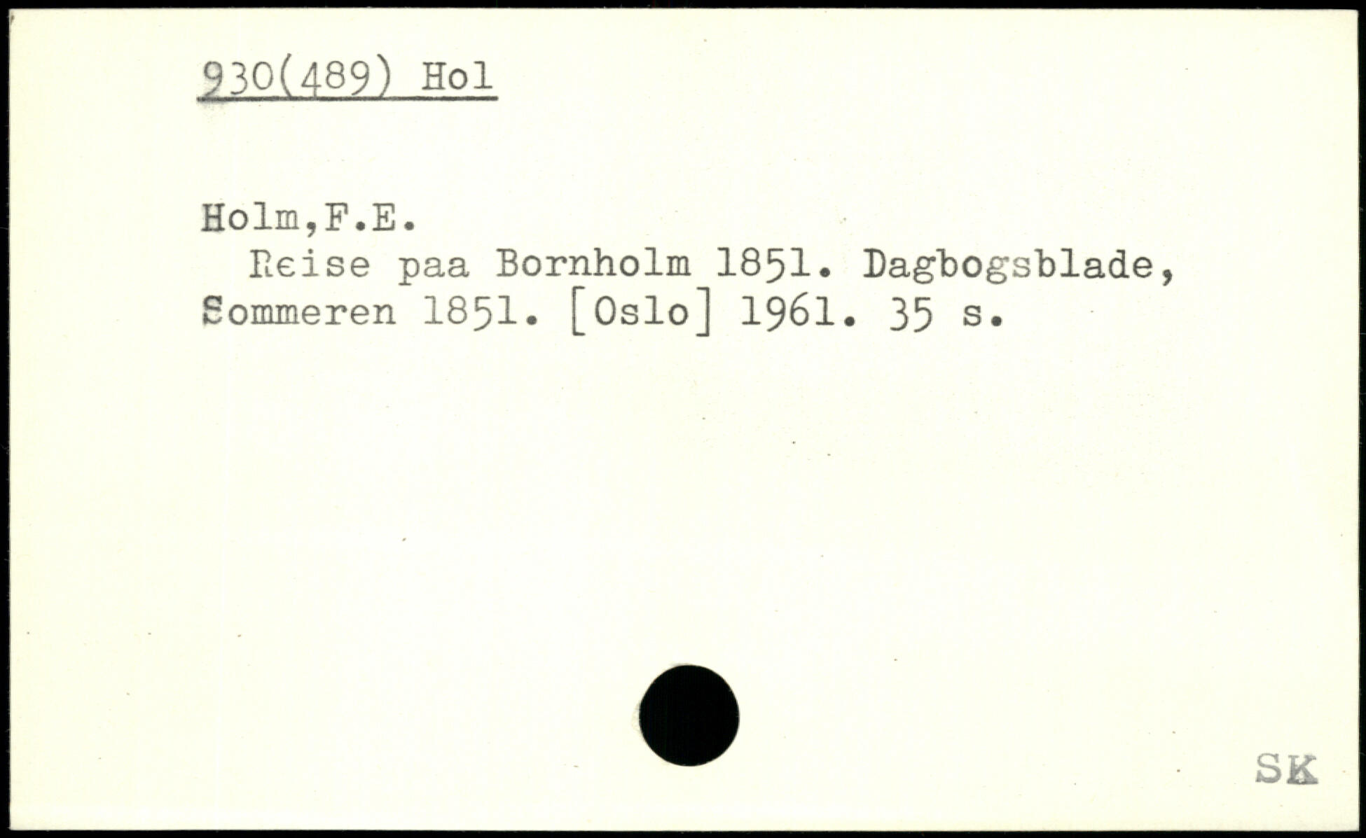 Reise paa Bornholm 1851. Dagbogsblade, Sommeren 1851. [Oslo] 1961.