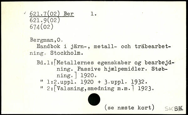 Handbok i järn-, metall- och träbearbetning, Stockholm.
