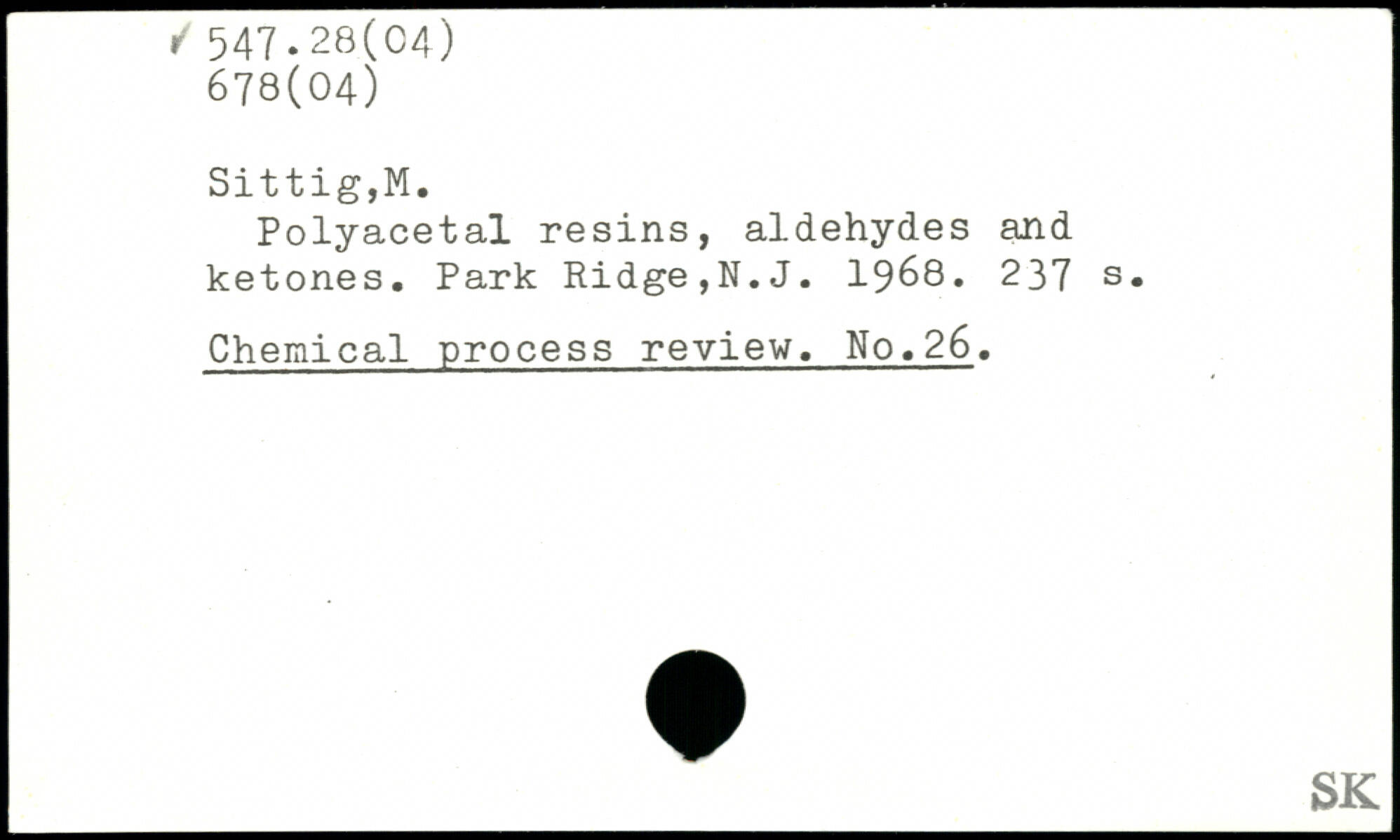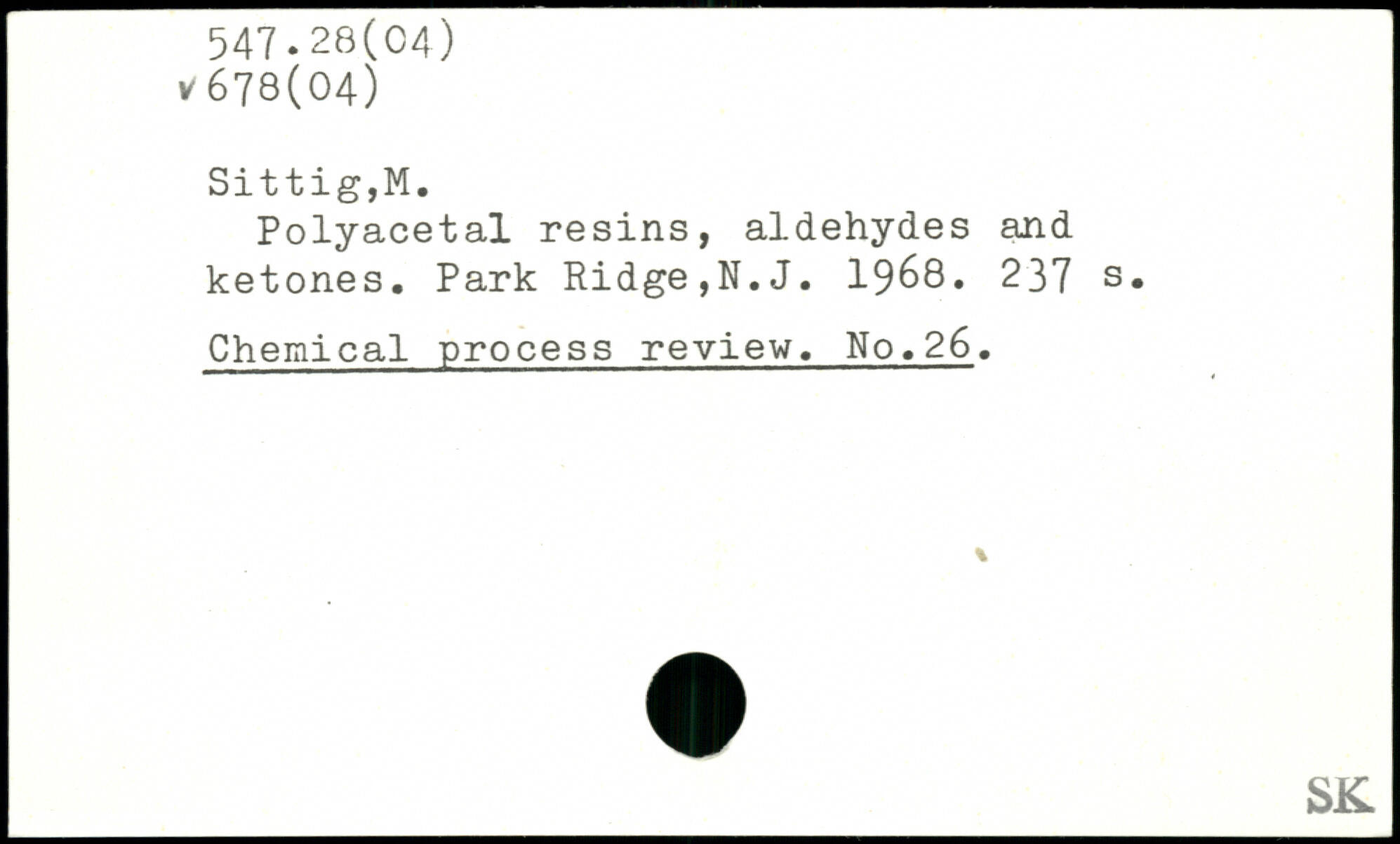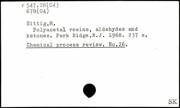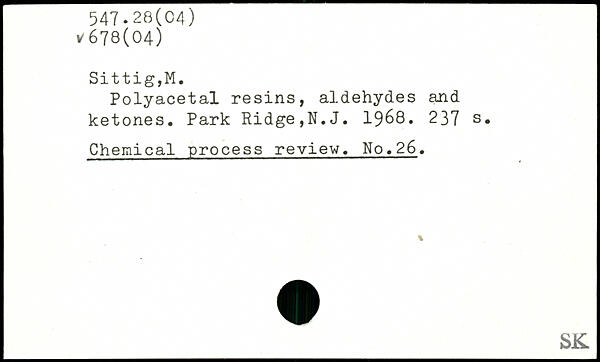 Polyacetal resins, aldehydes and ketones. Park Ridge,N.J. 1968.