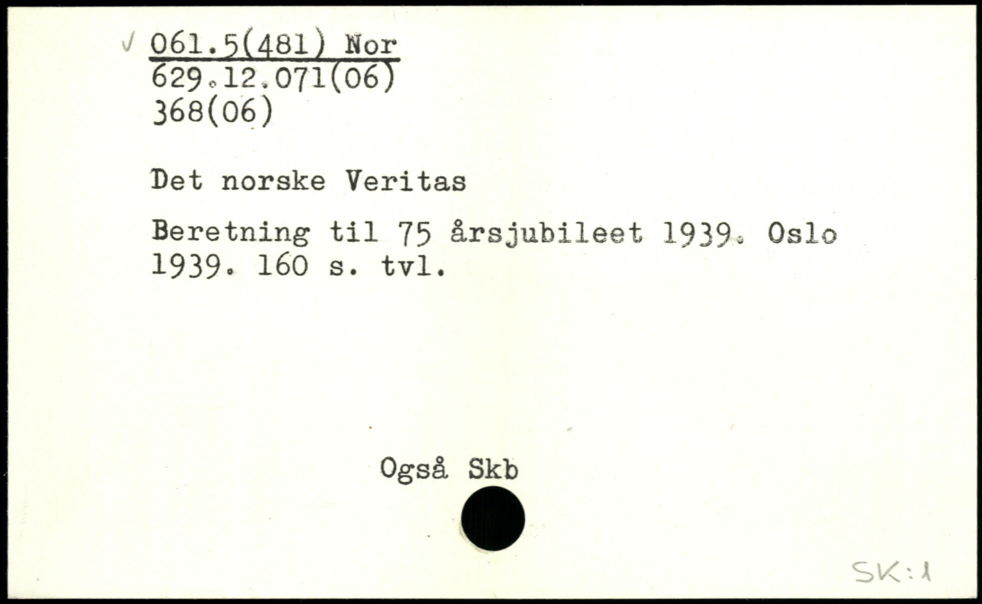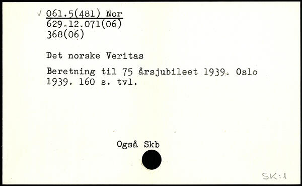 Det norske Veritas Beretning til 75 årsjubileet 1939- Oslo 1939