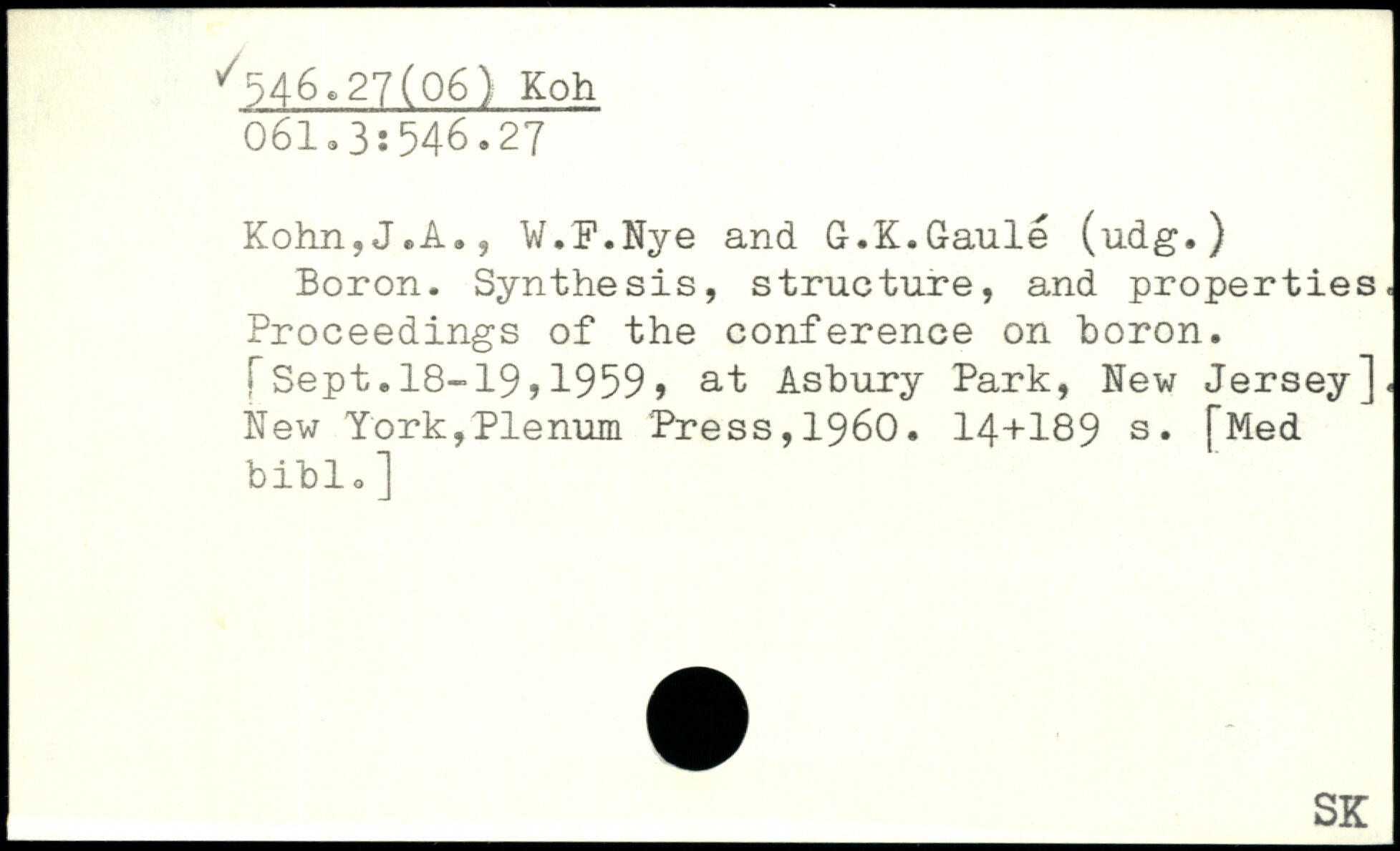 Boron. Synthesis, structure, and properties. Proceedings of the conference on “boron. TSept.18-19,1959 , at Asbury Park, New Jersey].