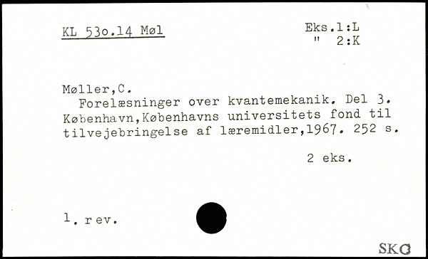 Forelæsninger over kvantemekanik. Del 3. København,Københavns universitets fond til tilvejebringelse af læremidler,19^7.