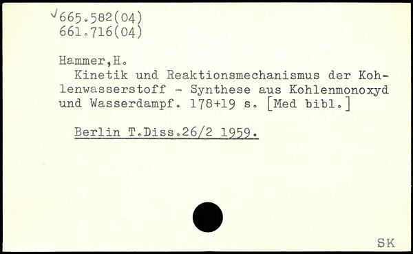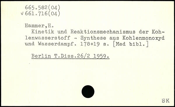 Kinetik und Reaktionsmechanismus der Kohlenwasserstoff - Synthese aus Kohlenmonoxyd und Wasserdampf.