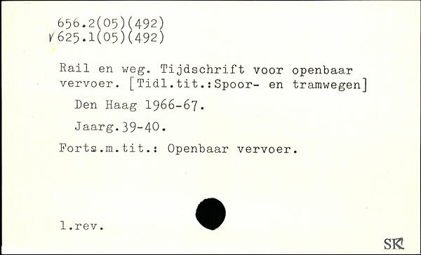 Rail en weg. Tijdschrift voor openbaar vervoer. [Tidl.tit.:Spoor- en tramwegen]