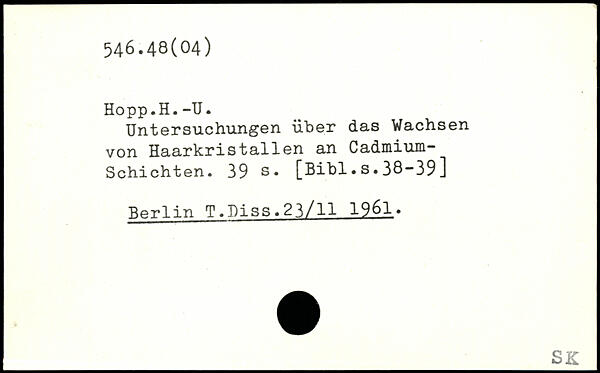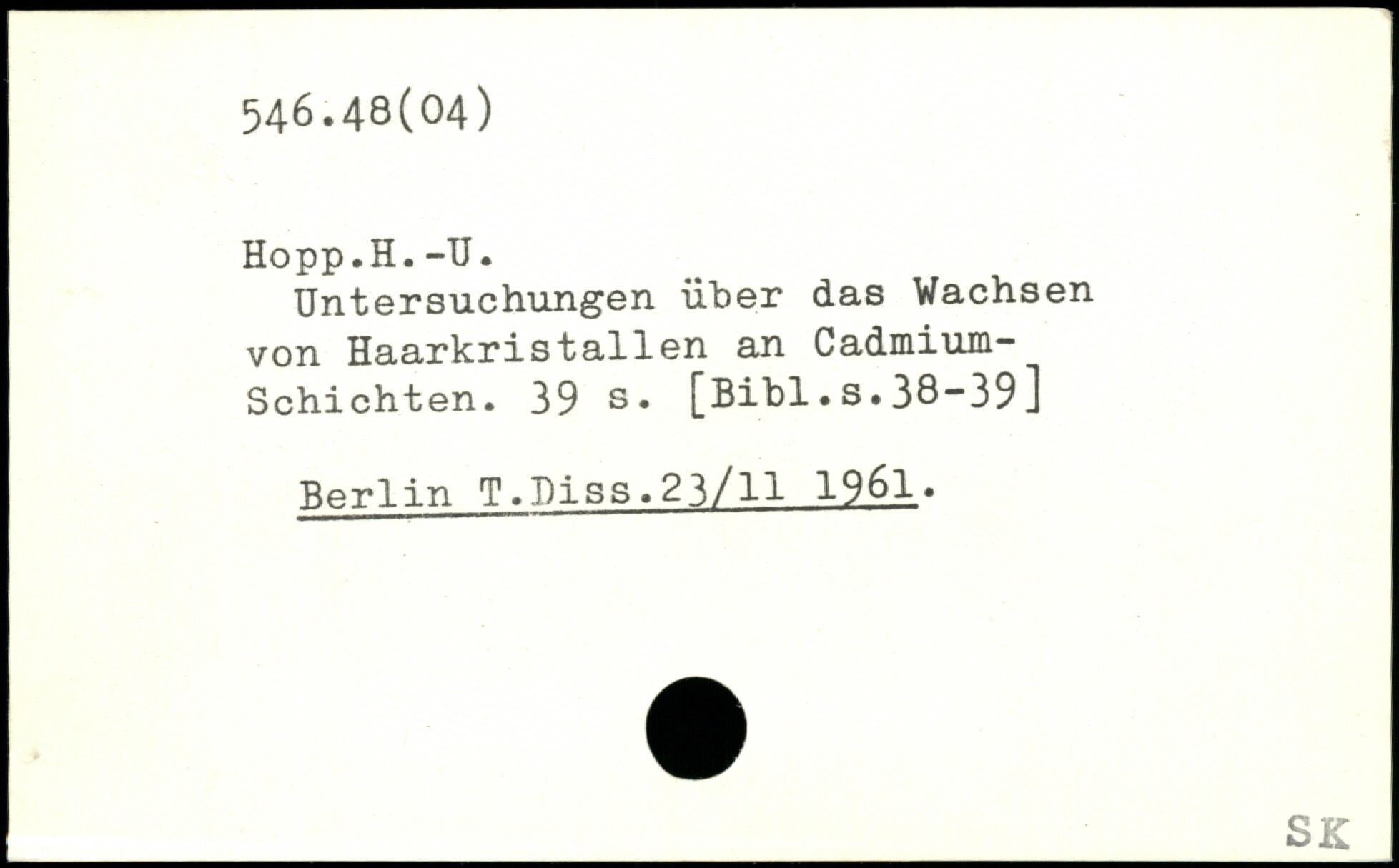 Untersuchungen über das Wachsen von Haarkristallen an Cadmium-Schichten.