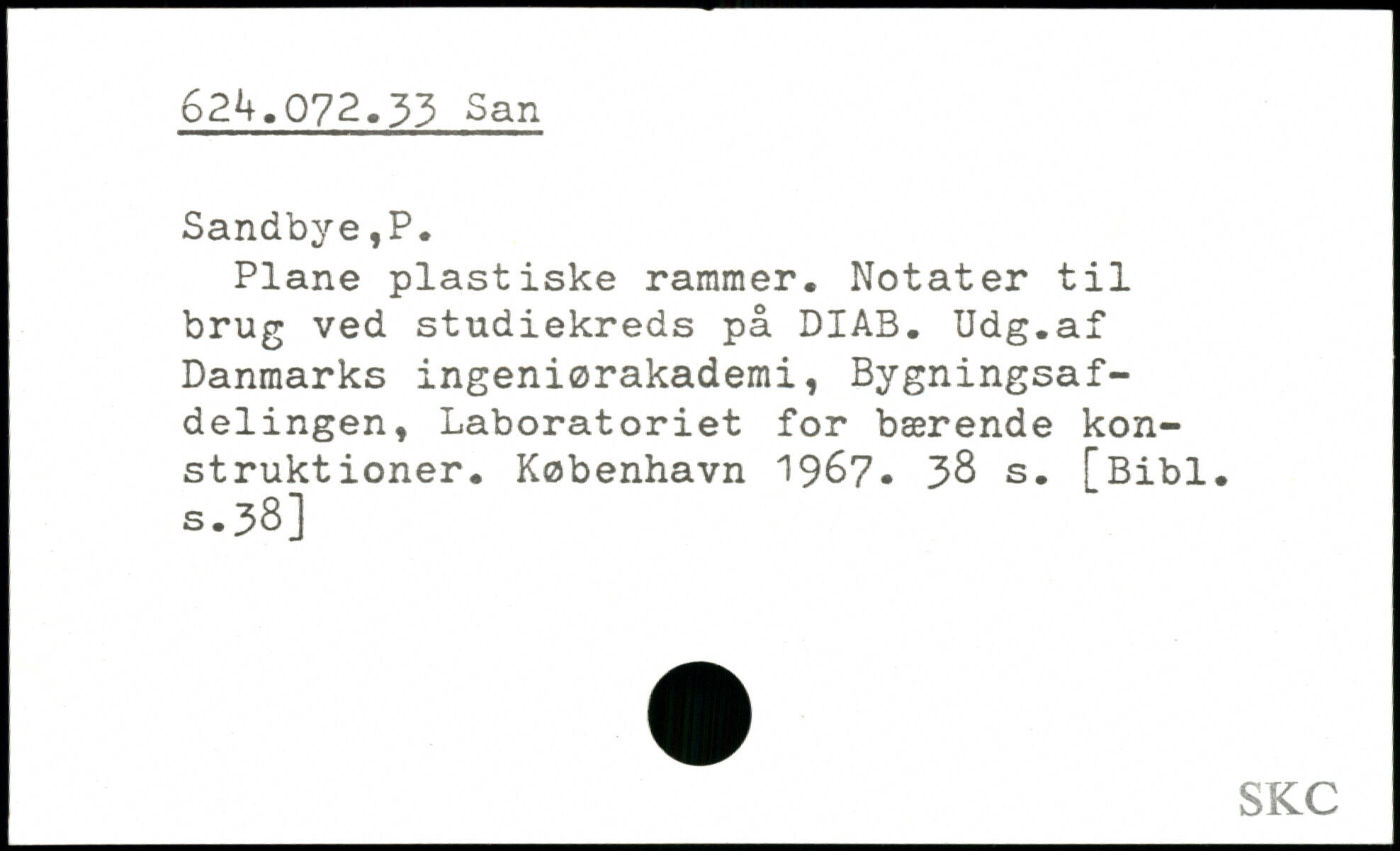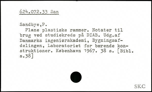 Plane plastiske rammer. Notater til brug ved studiekreds på DIAB. Udg.af Danmarks ingeniørakademi, Bygningsafdelingen, Laboratoriet for bærende konstruktioner.