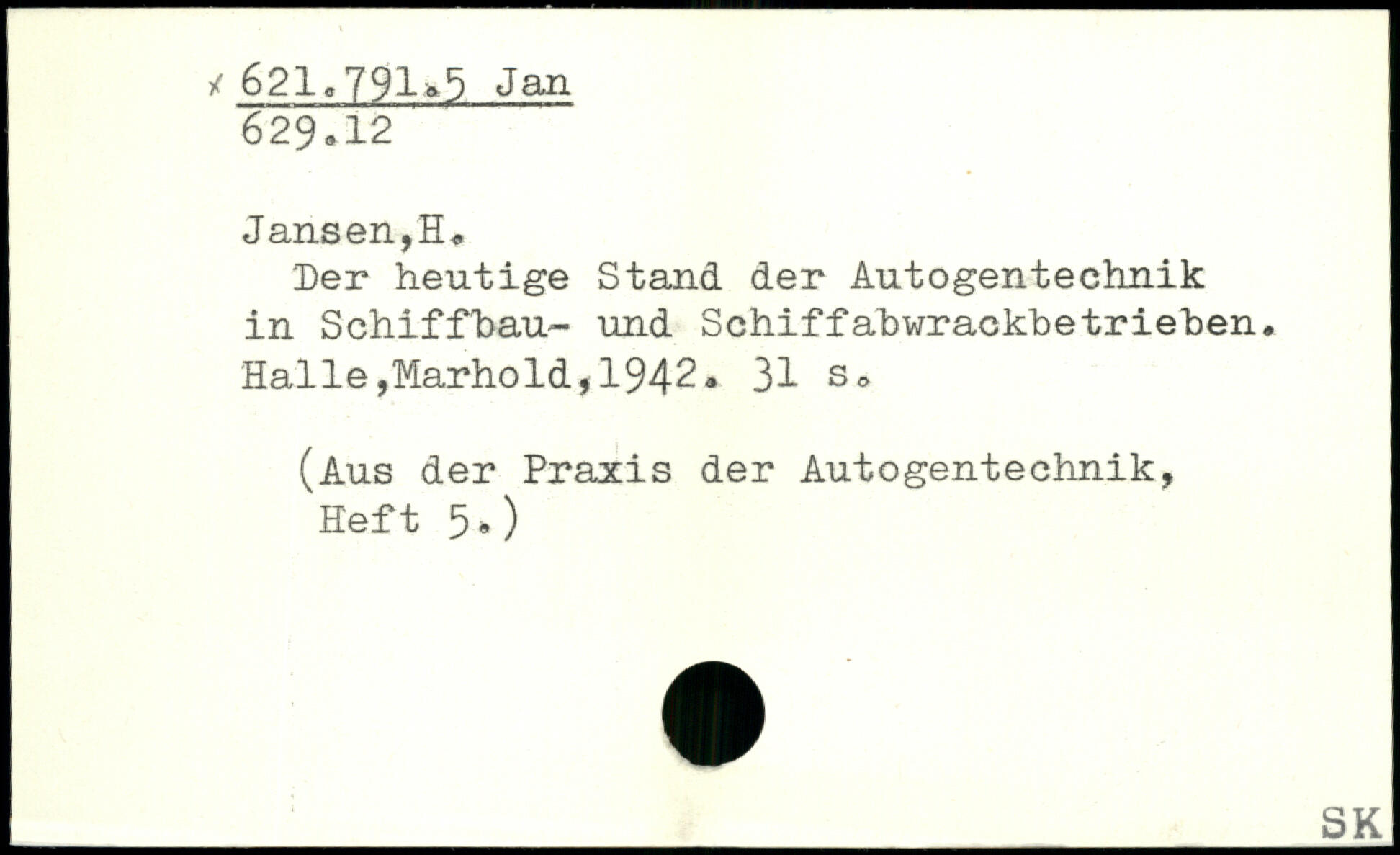 Der heutige Stand der Autogentechnik in Schiffbau- und Schiffabwrackbetrieben. Halle,iyiarhold, 1942.