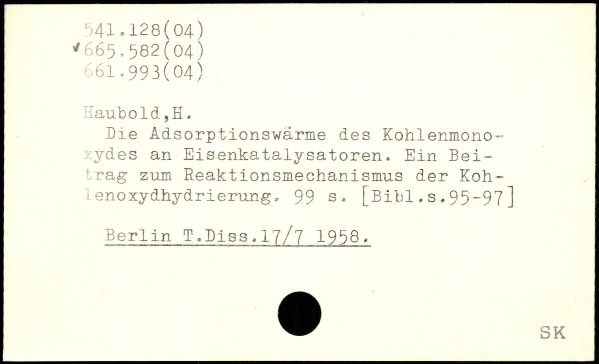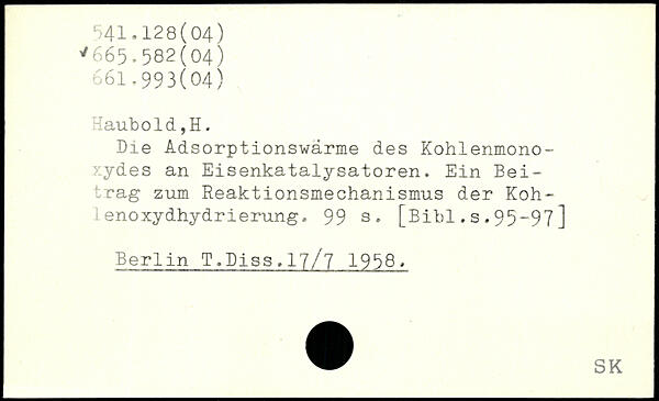 Me Adsorptionswarme des Kohlenmonoxydes an Eisenkatalysatoren. Ein Beitrag zum Reaktionsmechanismus der Koh-lenoxydhydrierung.