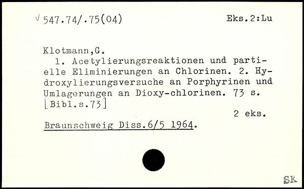 1. Acetylierungsreaktionen und partielle Eliminierungen an Chlorinen. 2. Hydroxylierungsversuche an Porphyrinen und Umlagerungen an Dioxy-chlorinen.