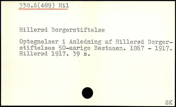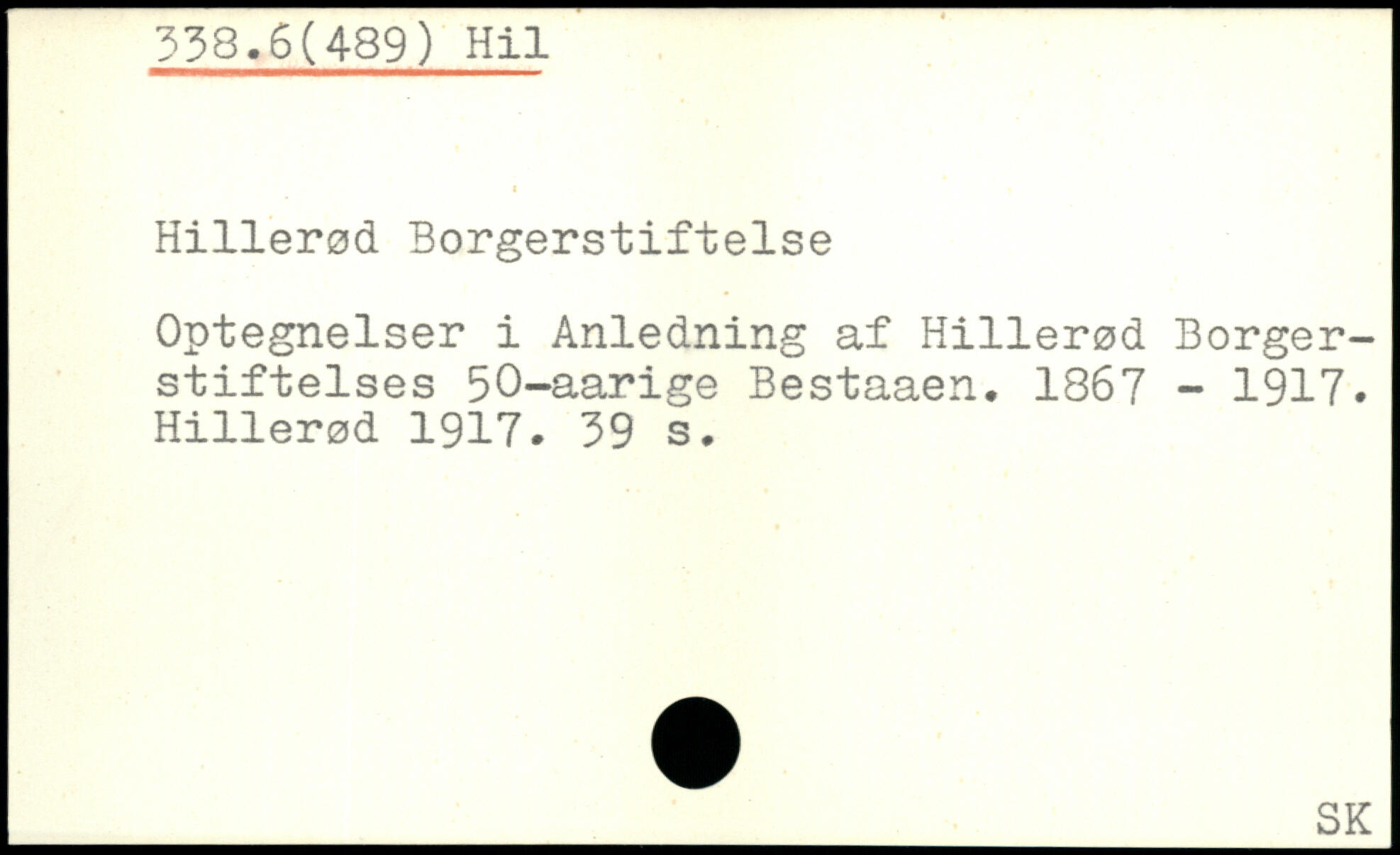 Hillerød Borgerstiftelse Optegnelser i Anledning af Hillerød Borgerstiftelses 50-aarige Bestaaen. 1867 - 1917. Hillerød 1917.