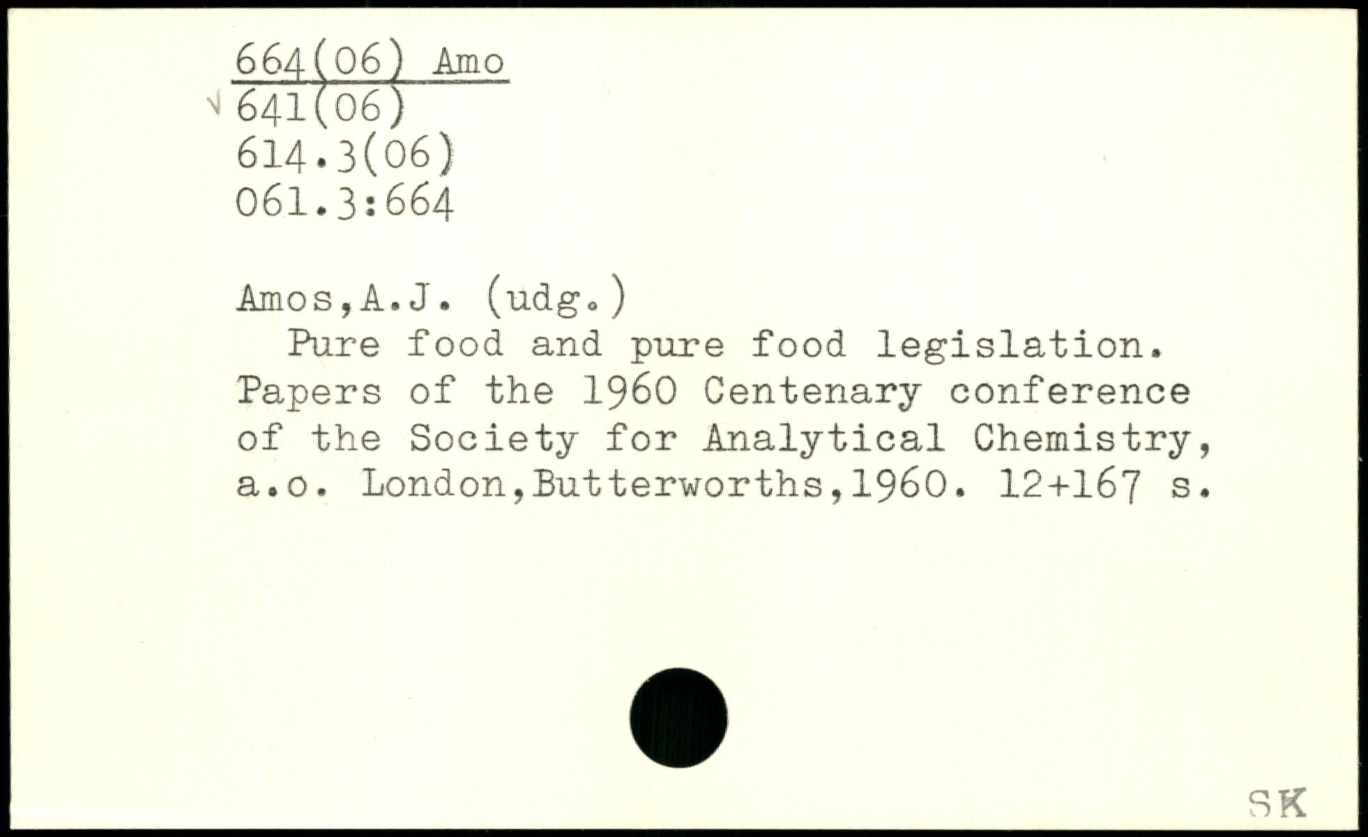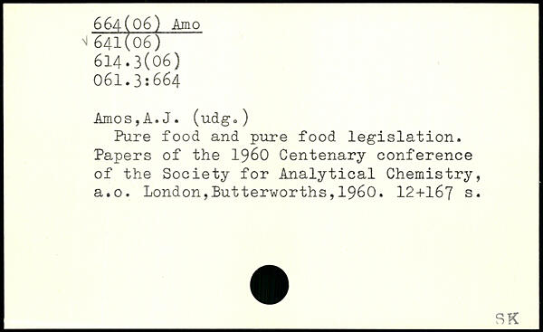 Pure food and pure food legislation. Papers of the 1960 Centenary conference of the Society for Analytical Chemistry, a.o.