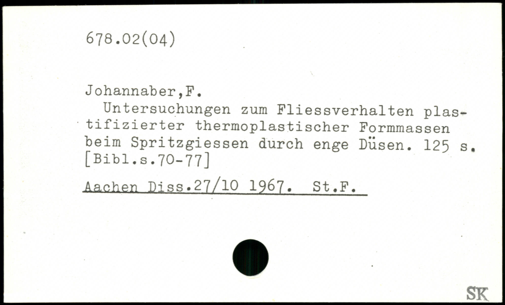 Untersuchungen zum Fliessverhalten plas-tifizierter thermoplastischer Formmassen beim Spritzgiessen durch enge Düsen.