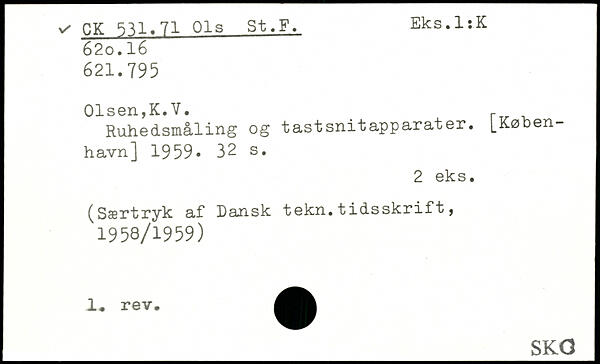 Olsen,K.V. , Ruhedsmåling og tastsnitapparater.