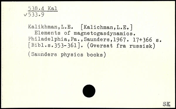 Kalikhman,L.E. [Kalichman,L.E.] Elements of magnetogasdynamics.