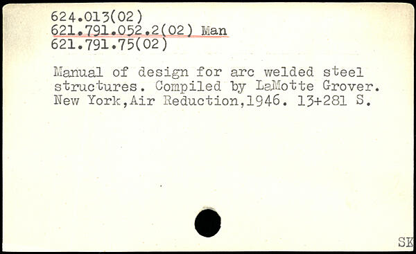 Manual of design for arc welded steel structures. Compiled by LaMotte Grover.