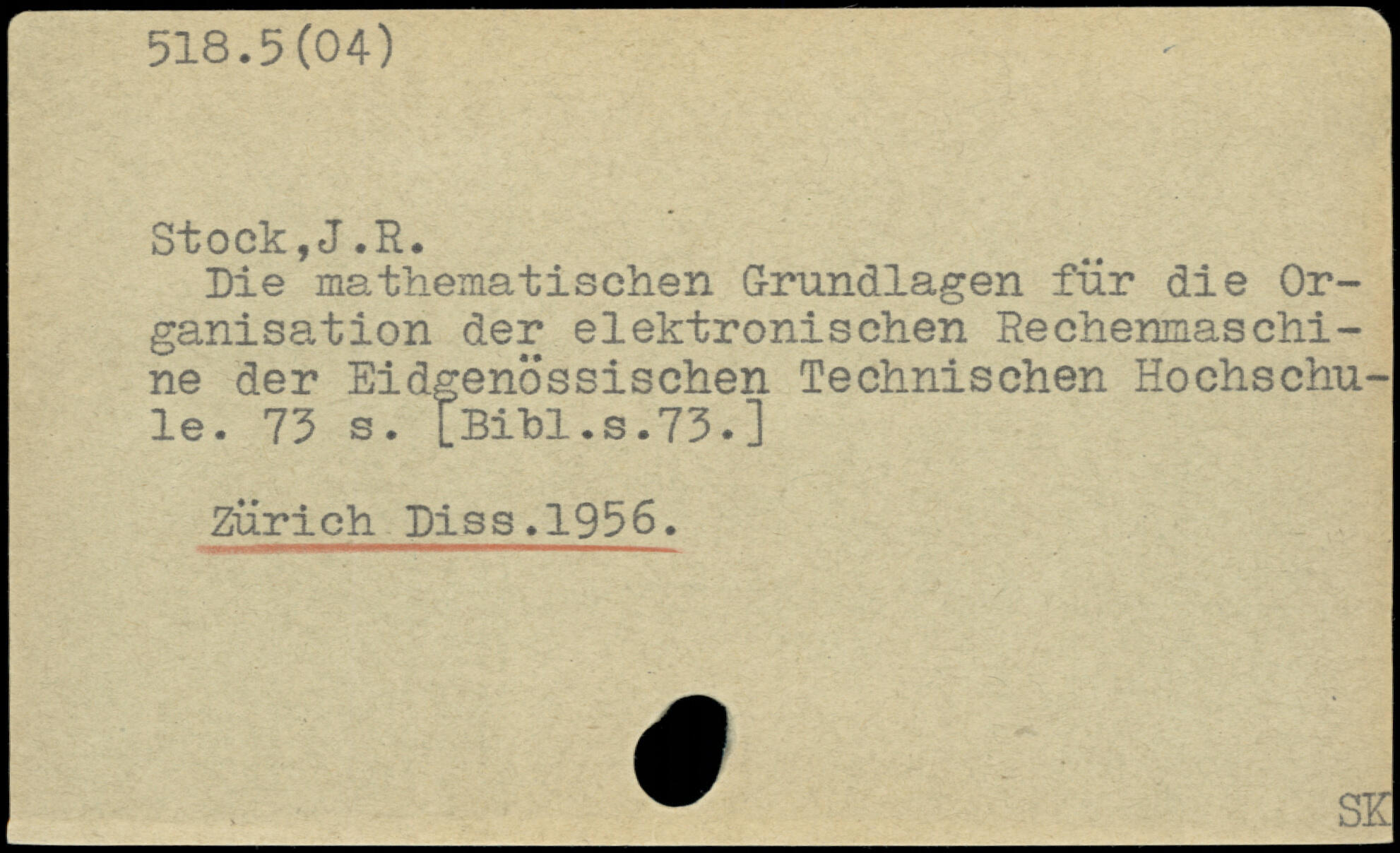Die mathematischen Grundlagen für die Organisation der elektronischen Rechenmaschine der Eidgenössischen Technischen Hochschu-le.