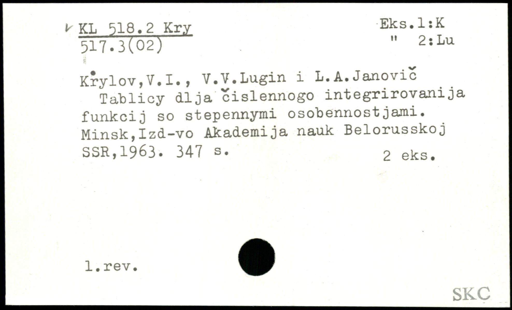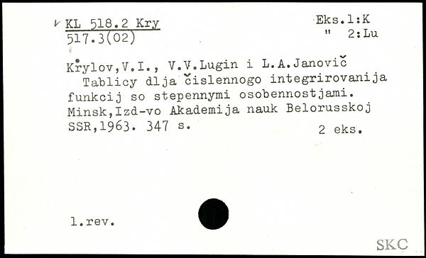Forfatter: V.I. Krylov, V.V. Lugin, L.A. Janovic
