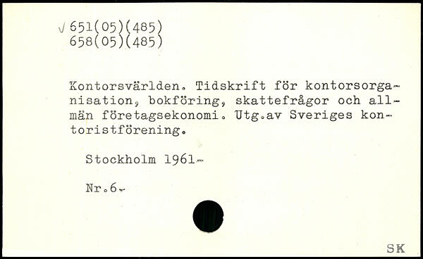 Kontorsvärlden, Tidskrift för kontorsorganisation, bokföring, skattefrågor och allmän företagsekonomi, TJtgoav Sveriges kon-toristförening