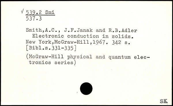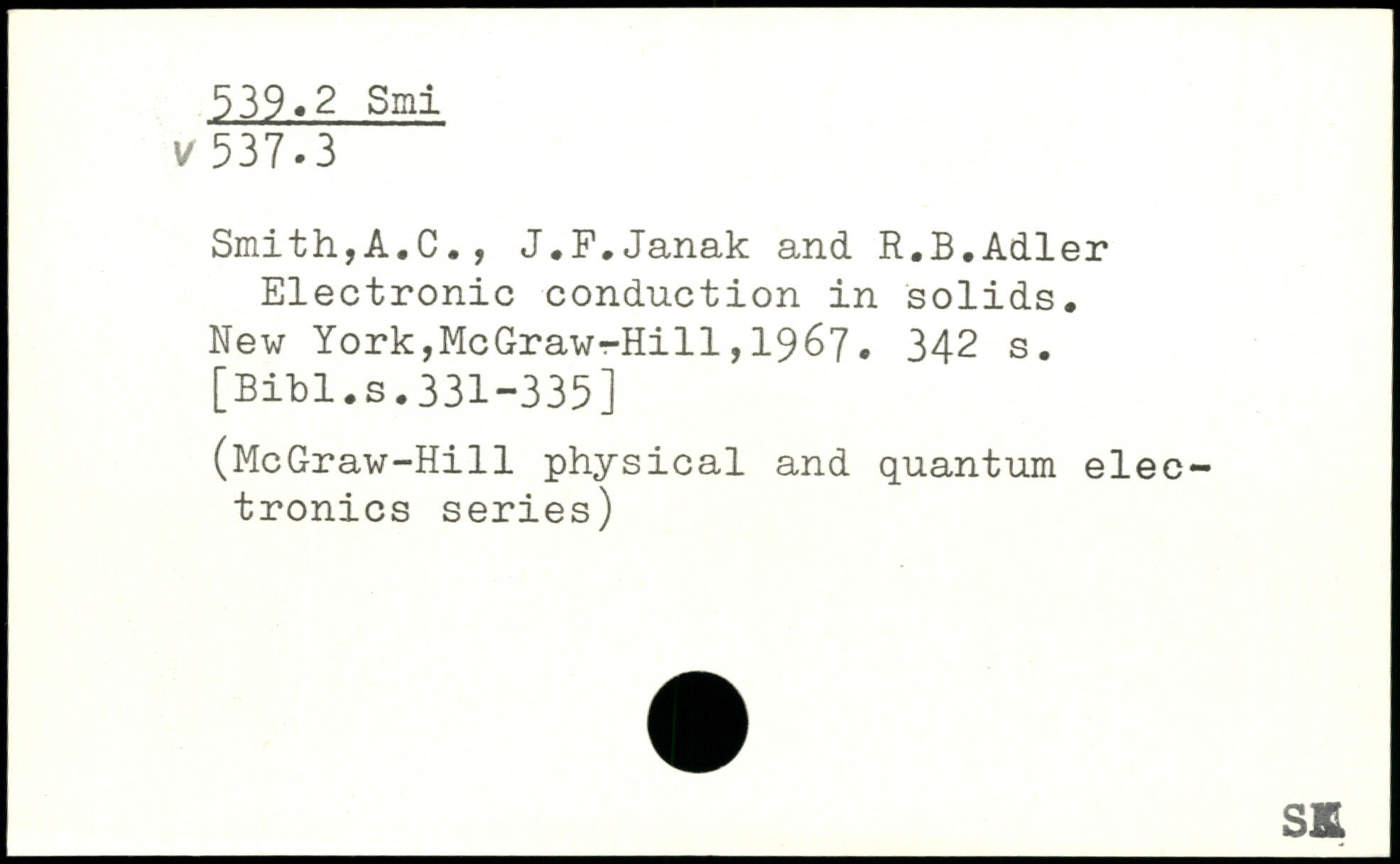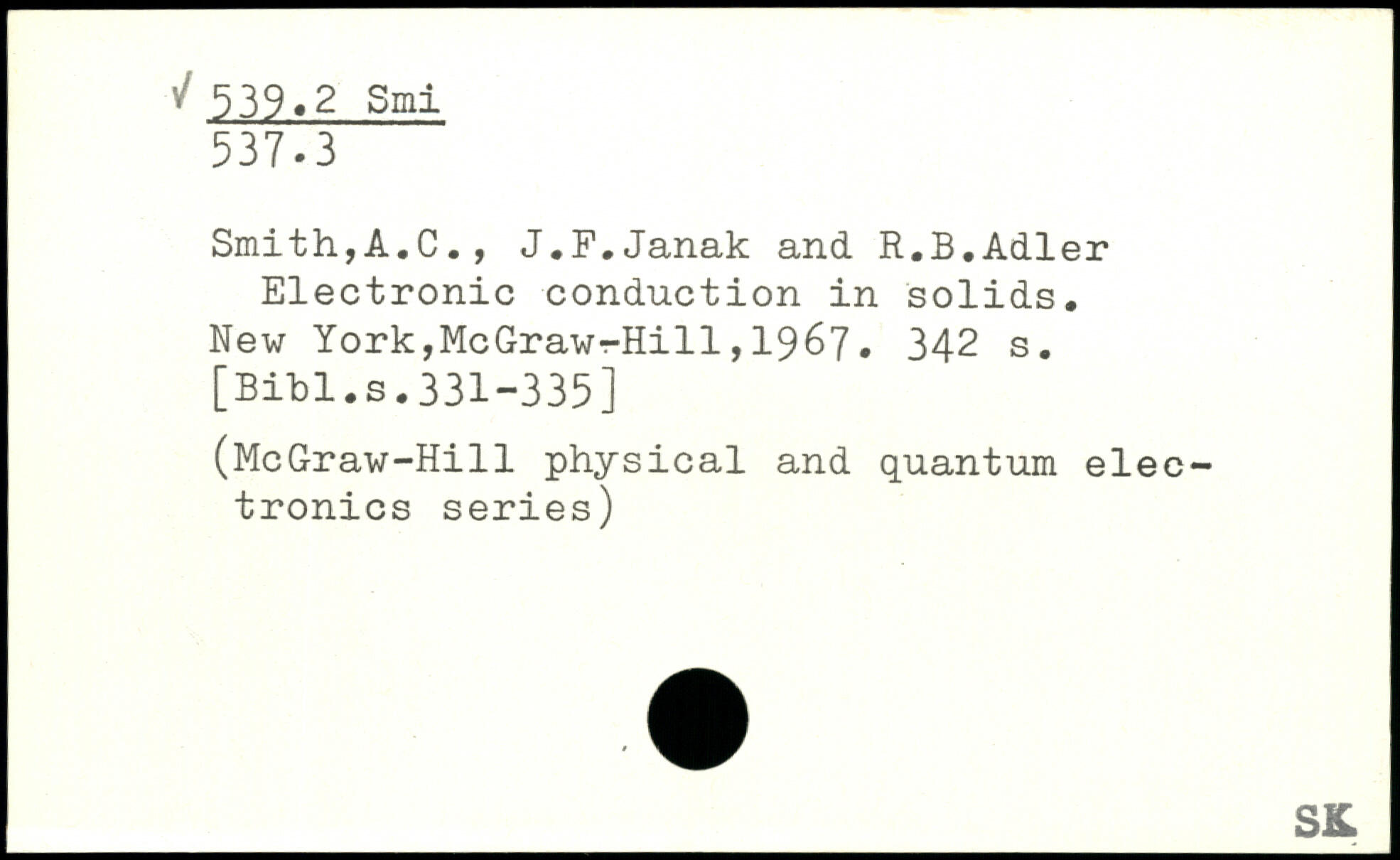 Smith,A.C., J.F.Janak and R.B.Adler Electronic conduction in solids.