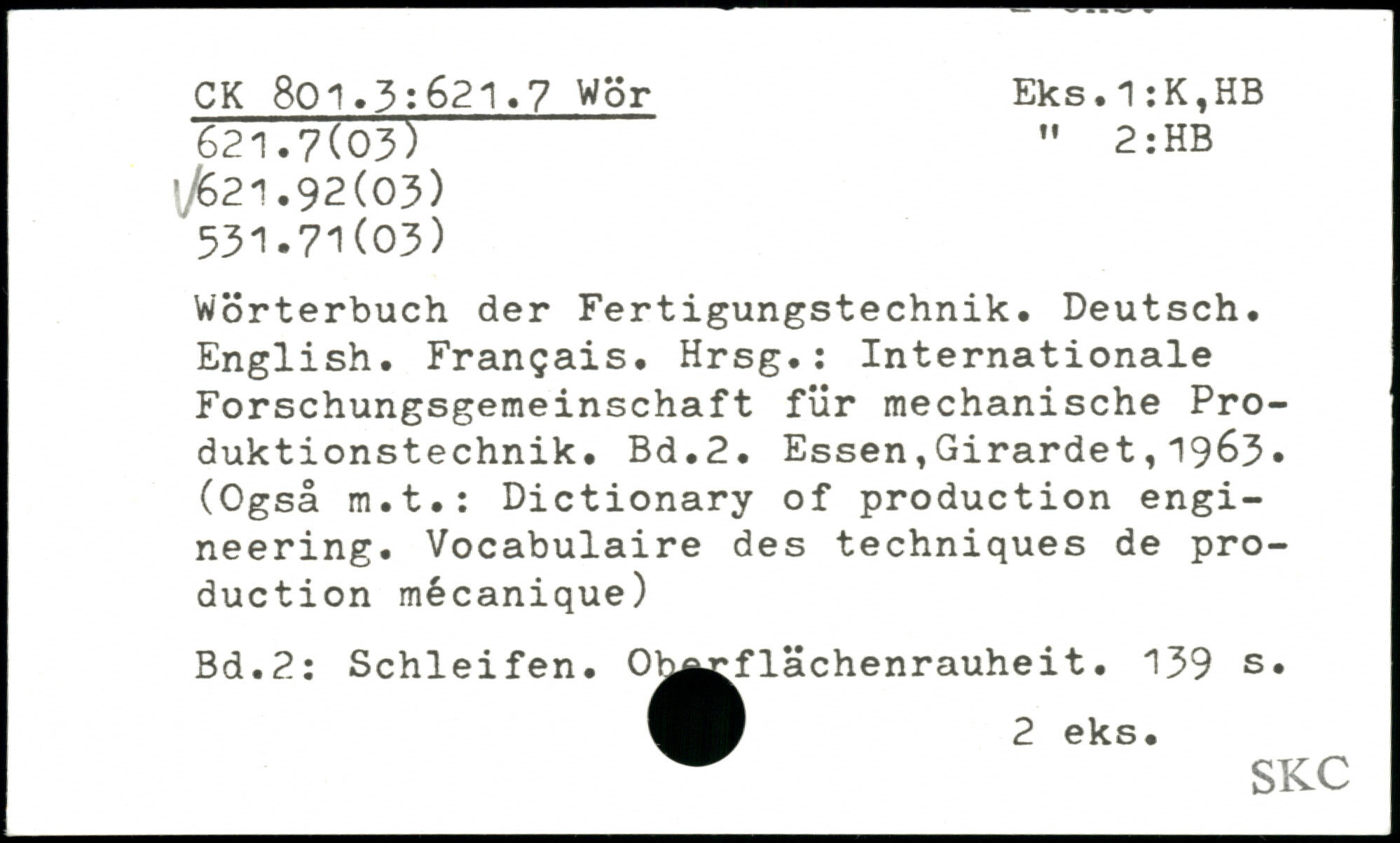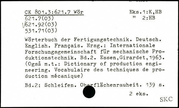 Wörterbuch der Fertigungstechnik. Deutsch. English. Français. Hrsg.: Internationale Forschungsgemeinschaft für mechanische Produktionstechnik.