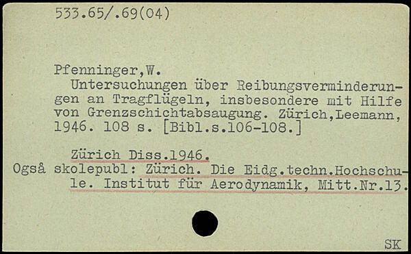 Untersuchungen über ReibungsVerminderungen an Tragflügeln, insbesondere mit Hilfe von Grenzschichtabsaugung.