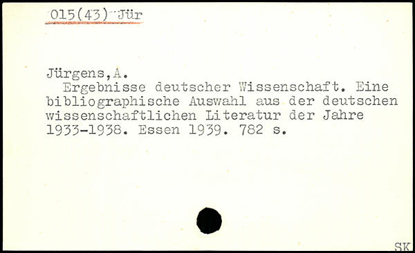 Ergebnisse deutscher Wissenschaft. Eine bibliographische Auswahl aus der deutschen wissenschaftlichen Literatur der Jahre 1933-1938.