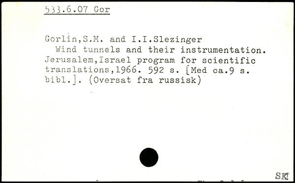 Wind tunnels and their instrumentation. Jerusalem,Israel program for scientific translations,1966.