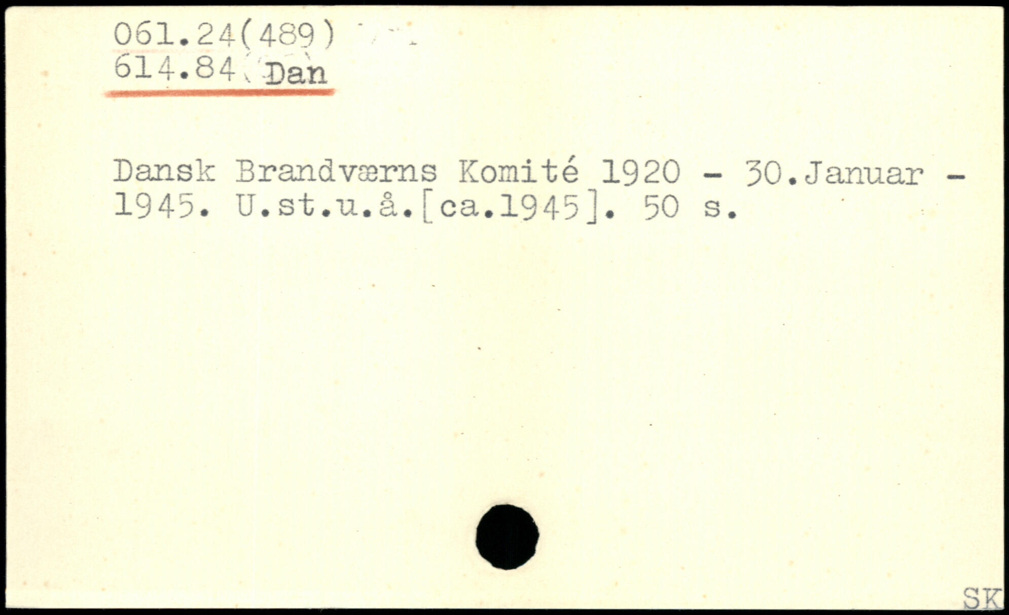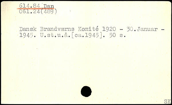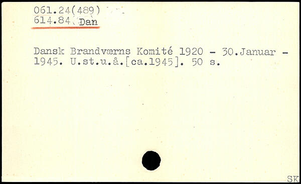 Dansk Brandværns Komité 1920 - 30.Januar -1945. U.st.u.å.[ca.1945].
