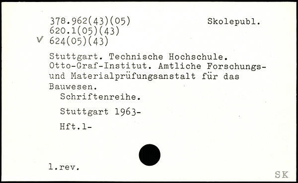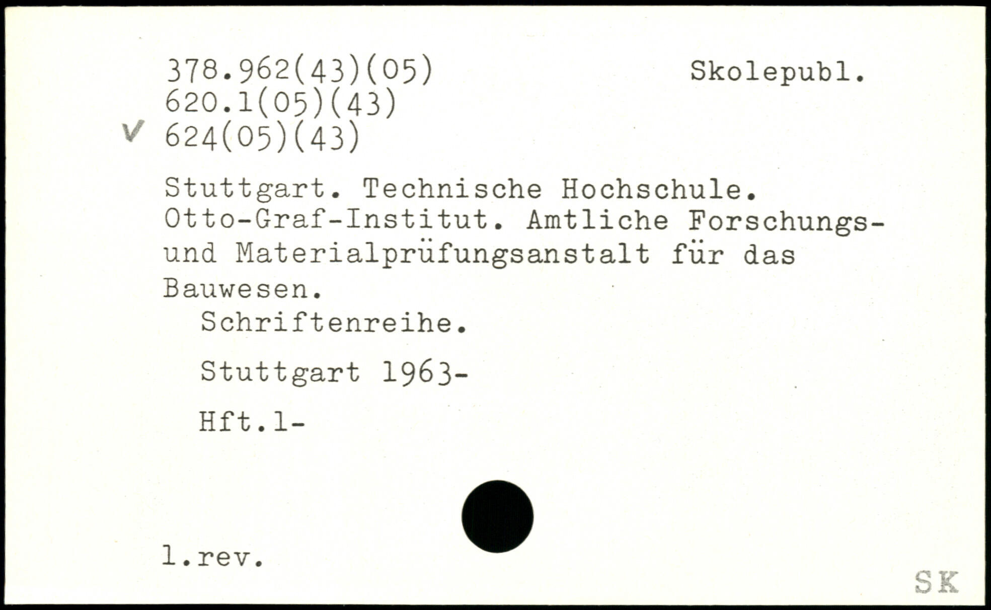 Stuttgart. Technische Hochschule. Otto-Graf-Institut. Amtliche Forschungsund Materialprüfungsanstalt für das Bauwesen. Schriftenreihe.
