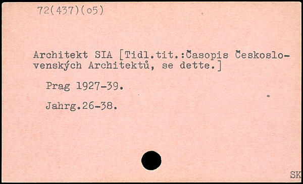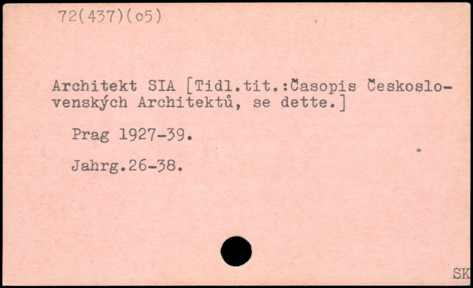 Architekt SIA [Tidl.tit.söasopis Ceskoslo-venskÿch Architektû, se dette,] Prag 1927-39. Jahrg.26-38.