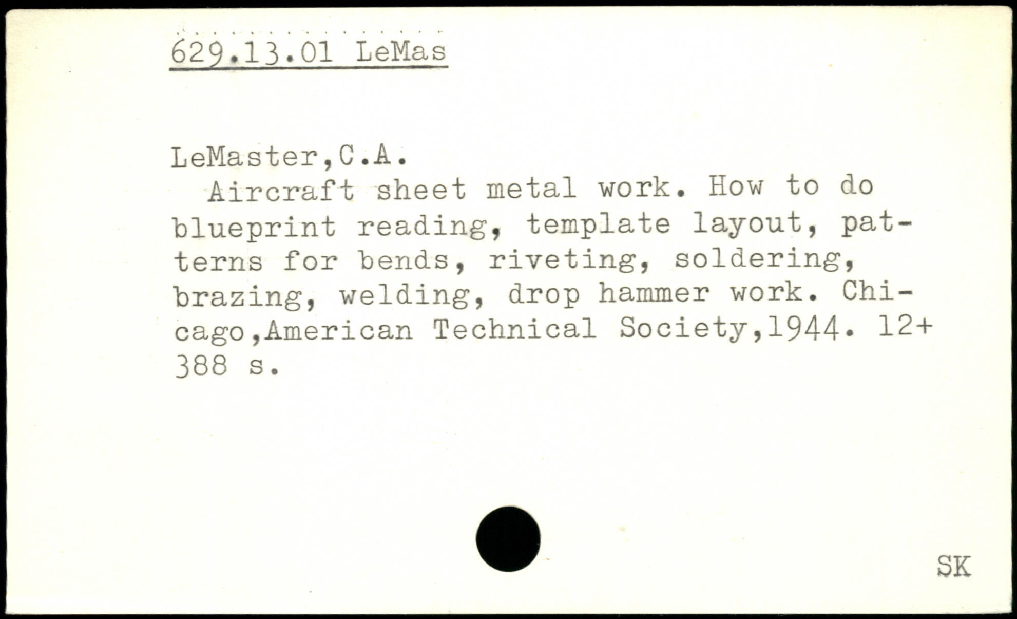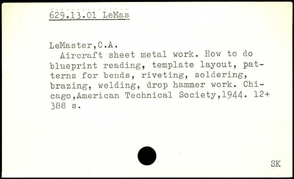 Aircraft sheet metal work. How to do blueprint reading, template layout, patterns for bends, riveting, soldering, brazing, welding, drop hammer work.