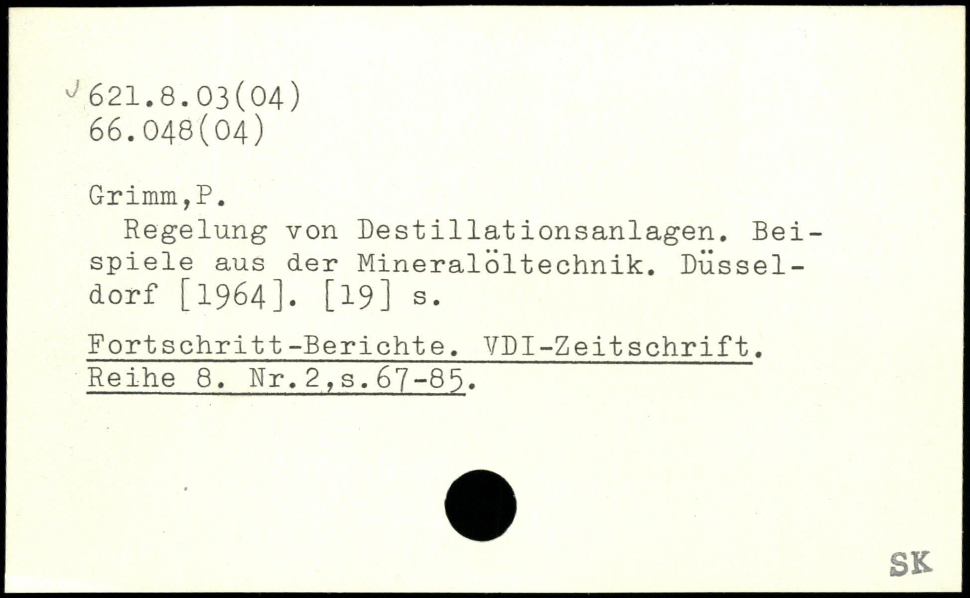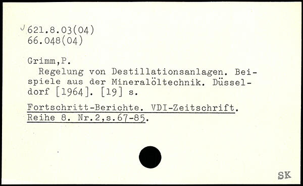 Regelung von Destillationsanlagen. Beispiele aus der Mineraloltechnik. Düsseldorf [1964]. [l9] s. Fortschritt-Berichte. VDI-ZeitSchrift. Reihe 8. Nr.2,s.67-86.