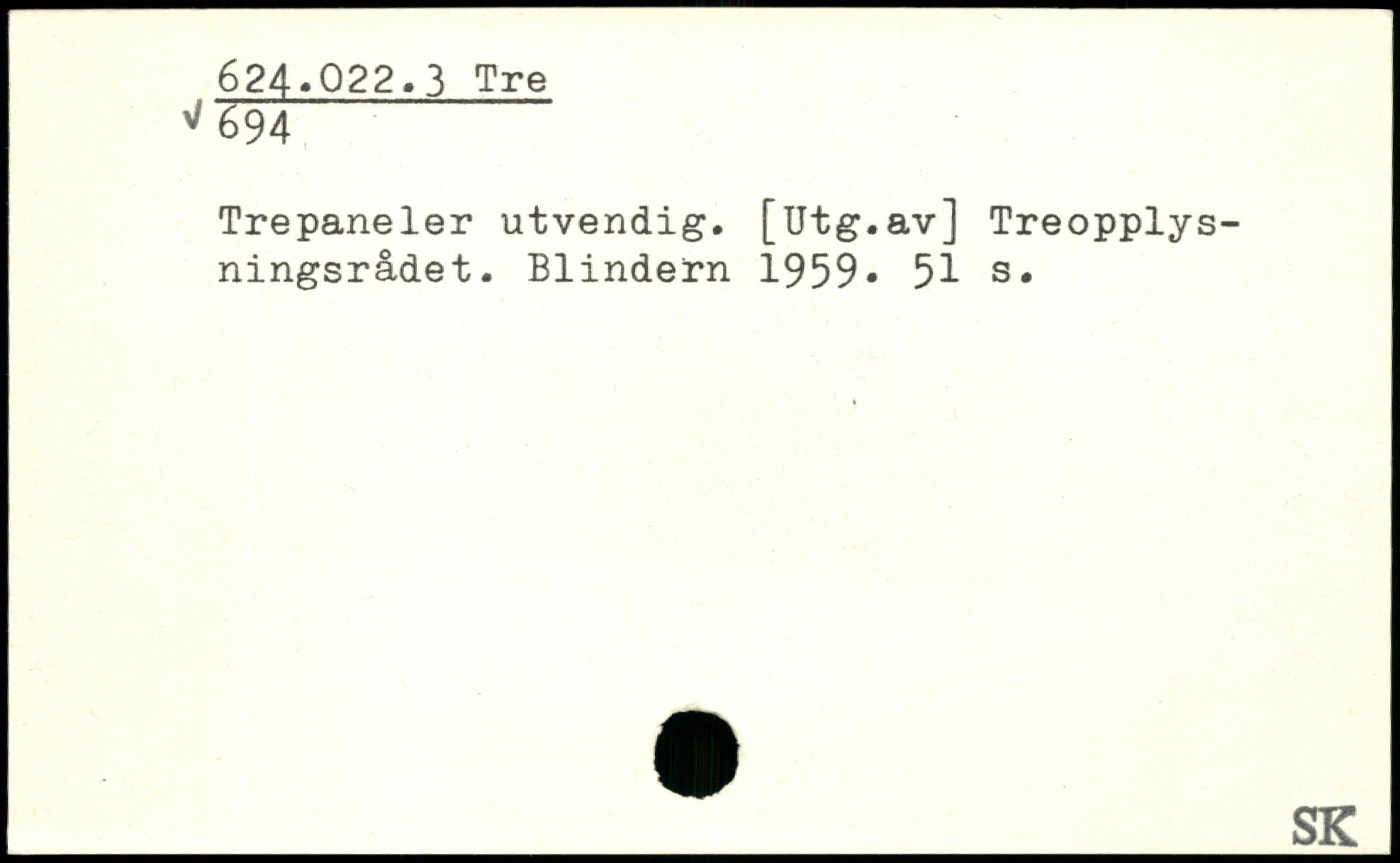 Trepaneler utvendig. [Utg.av] Treopplys-ningsrådet. Blindem 1959-
