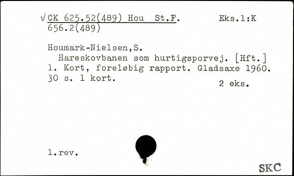 Hareskovbanen som hurtigsporvej. [Hft.] 1. Kort, foreløbig rapport. Gladsaxe 1960.