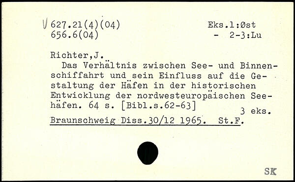 Das Verhältnis zwischen See- und Binnenschiffahrt und^sein Einfluss auf die Gestaltung der Hafen in der historischen Entwicklung der nordwesteuropaischen Seehafen.