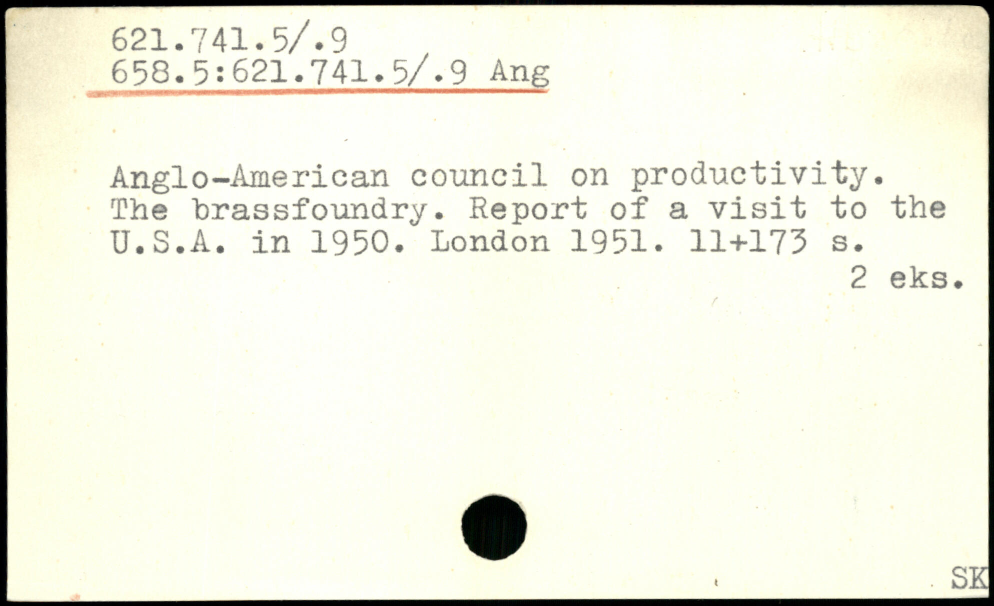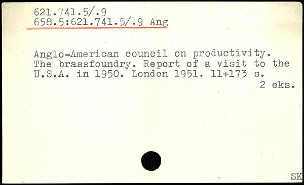 Anglo-American council on productivity. The hrassfoundry. Report of a visit to the U.S.A. in 1950.