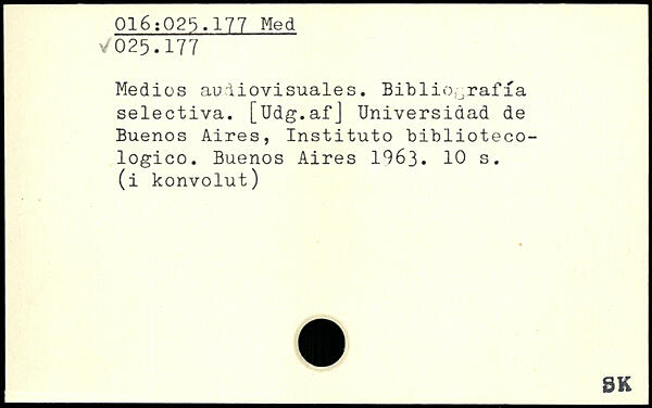 Medios audiovisuales. Bibliograffa selectiva. [Udg.afJ Universidad de Buenos Aires, Instituto biblioteco-logico. Buenos Aires 1963.