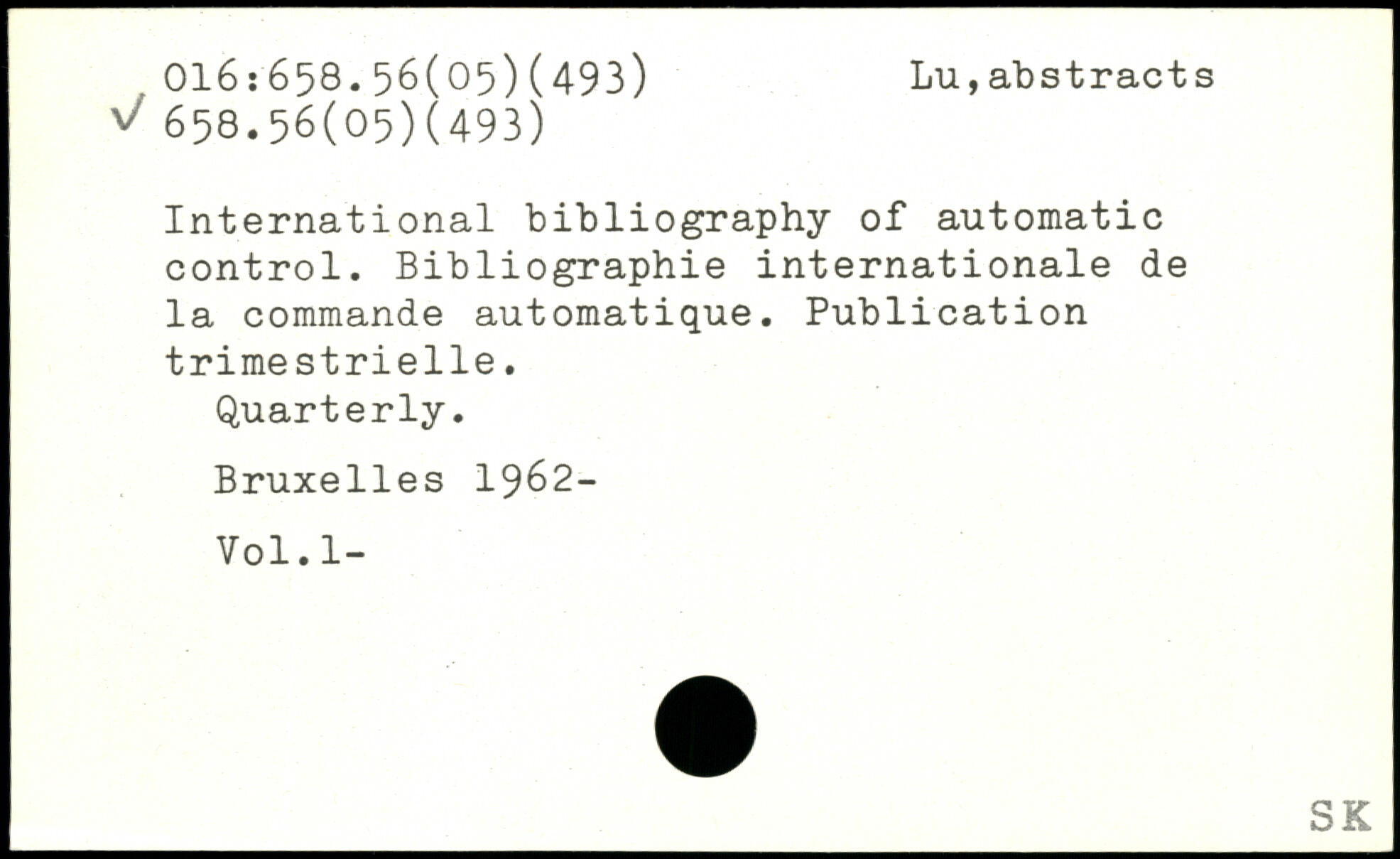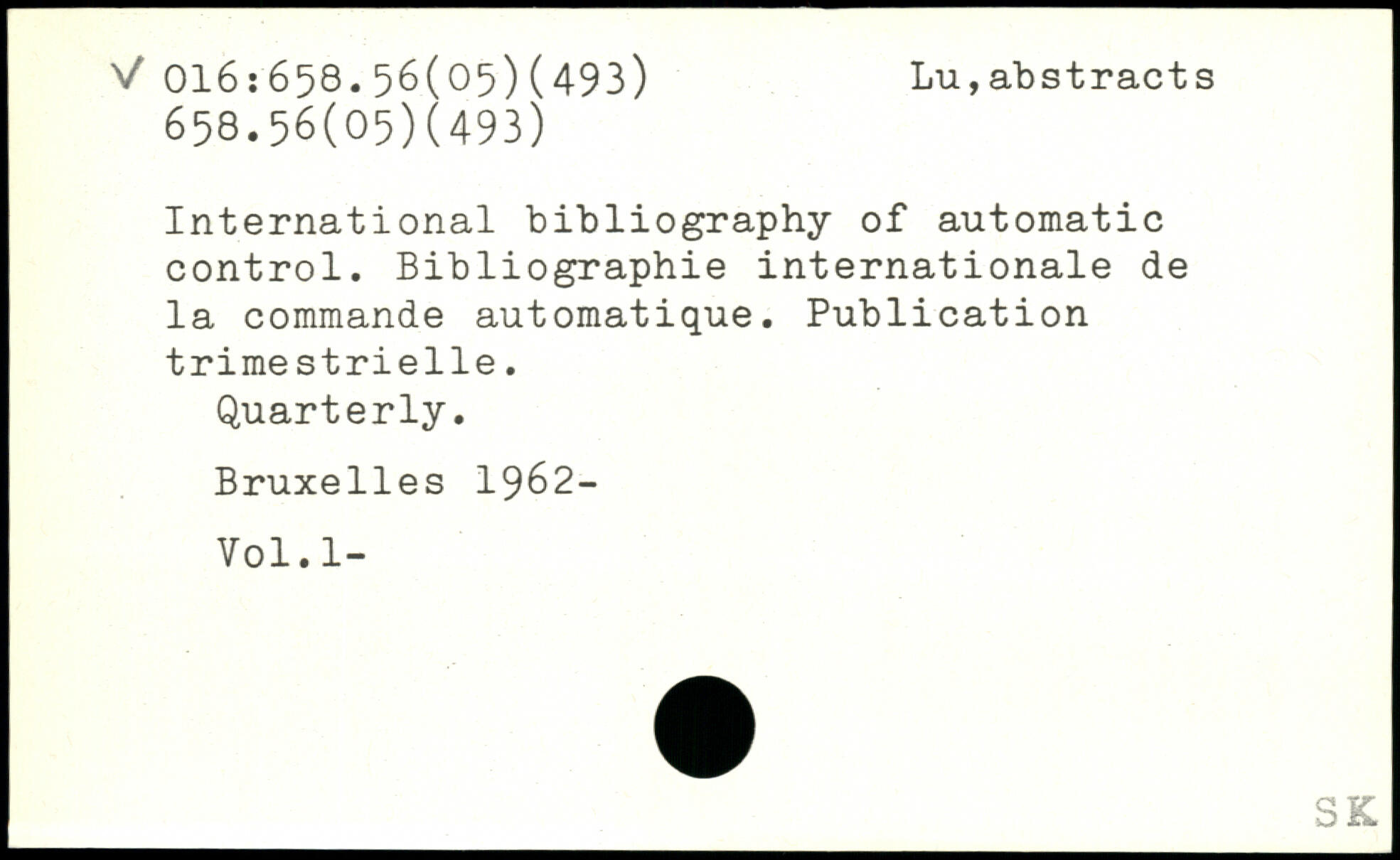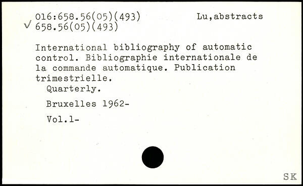International bibliography of automatic control. Bibliographie internationale de la commande automatique. Publication trimestrielle. Quarterly.