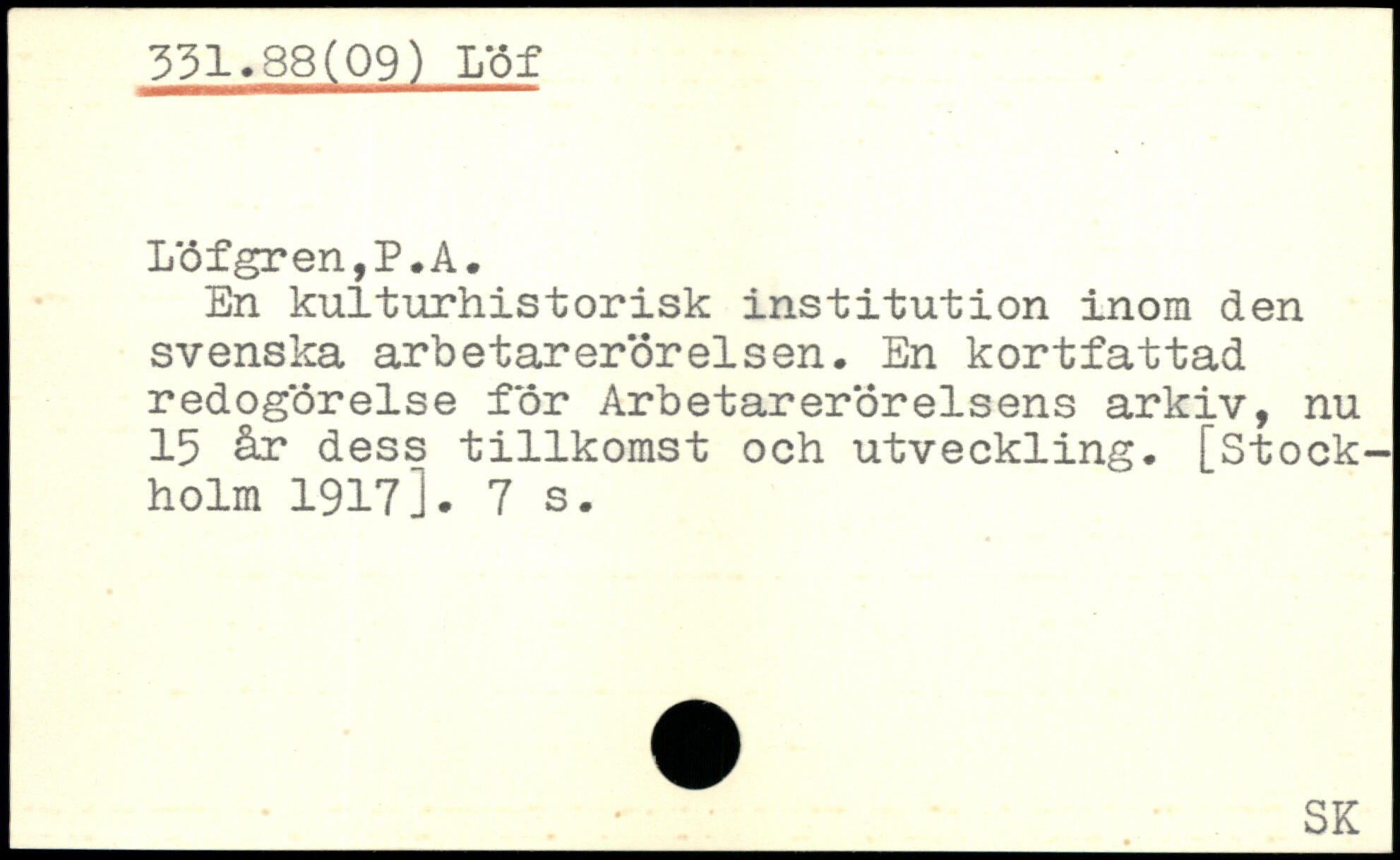 En kulturhistorisk institution inom den svenska arbetarerörelsen. En kortfattad redogörelse för Arbetarerörelsens arkiv, nu 15 år dess tillkomst och utveckling.