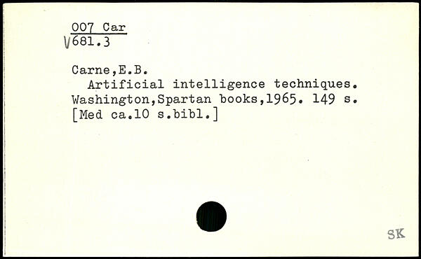 Artificial intelligence techniques, Washington,Spartan hooks,1965, 149 s.