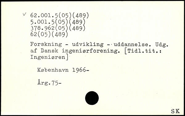 Forskning - udvikling --uddannelse. Udg. af Dansk ingeniørforening.