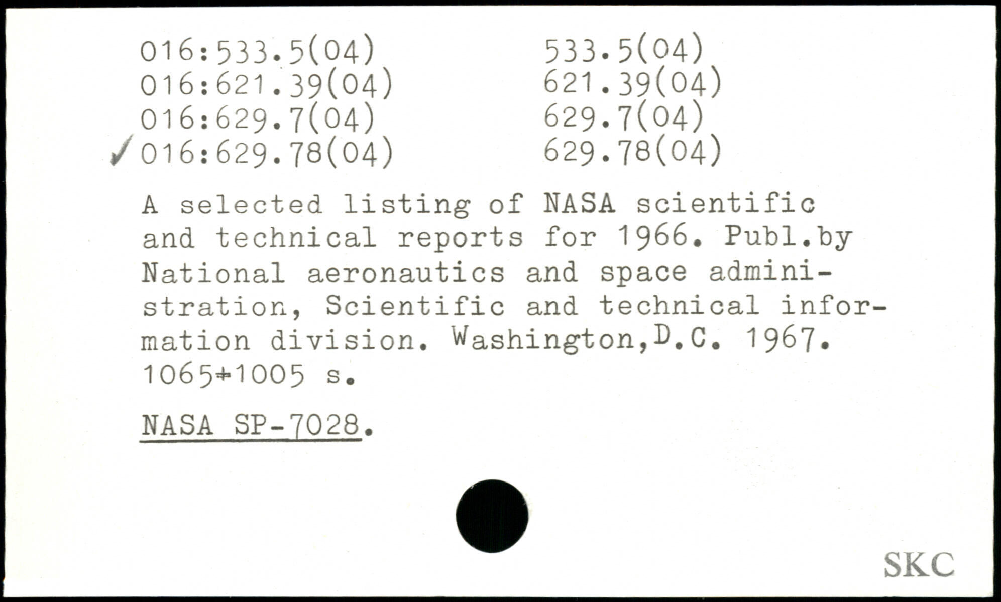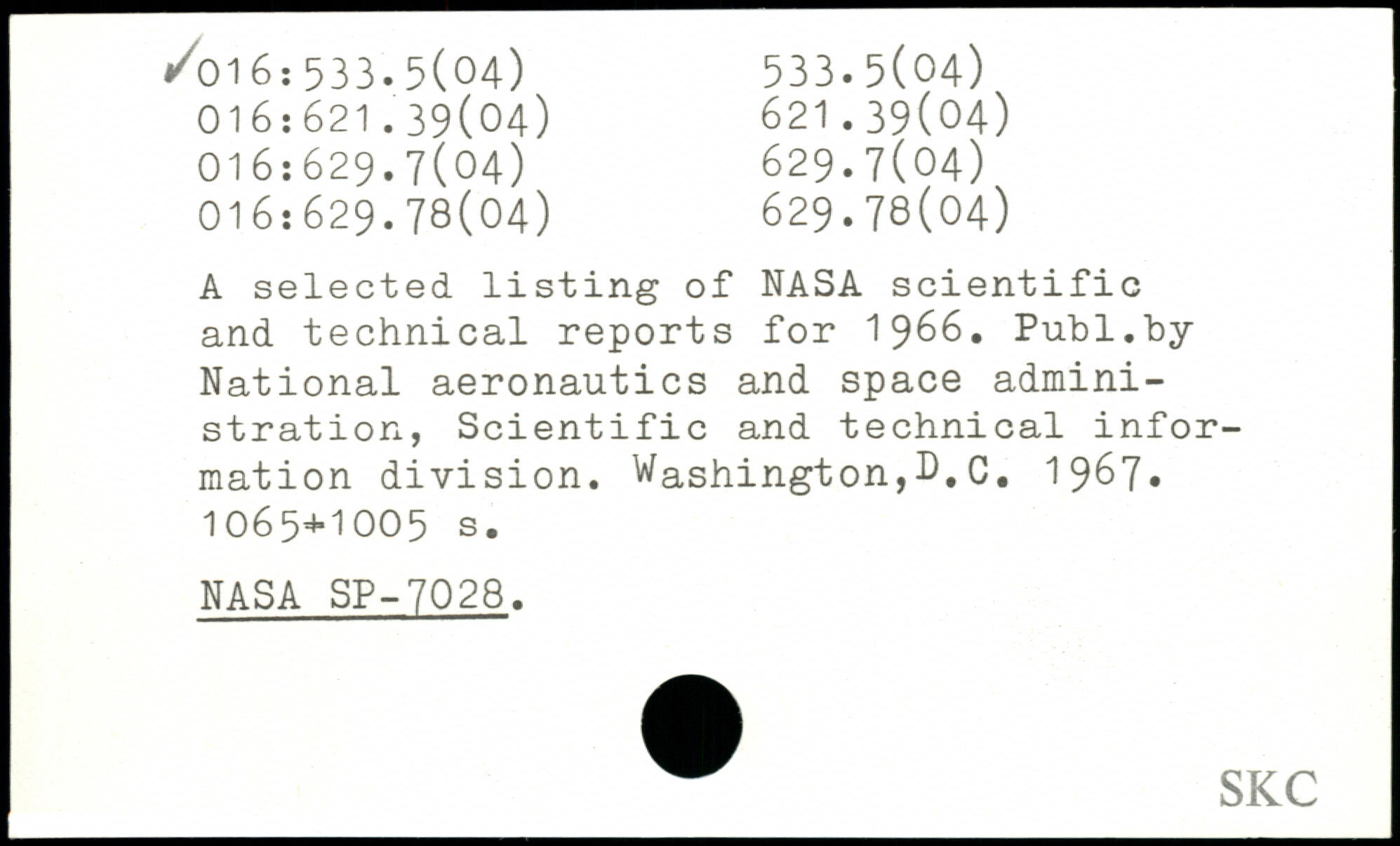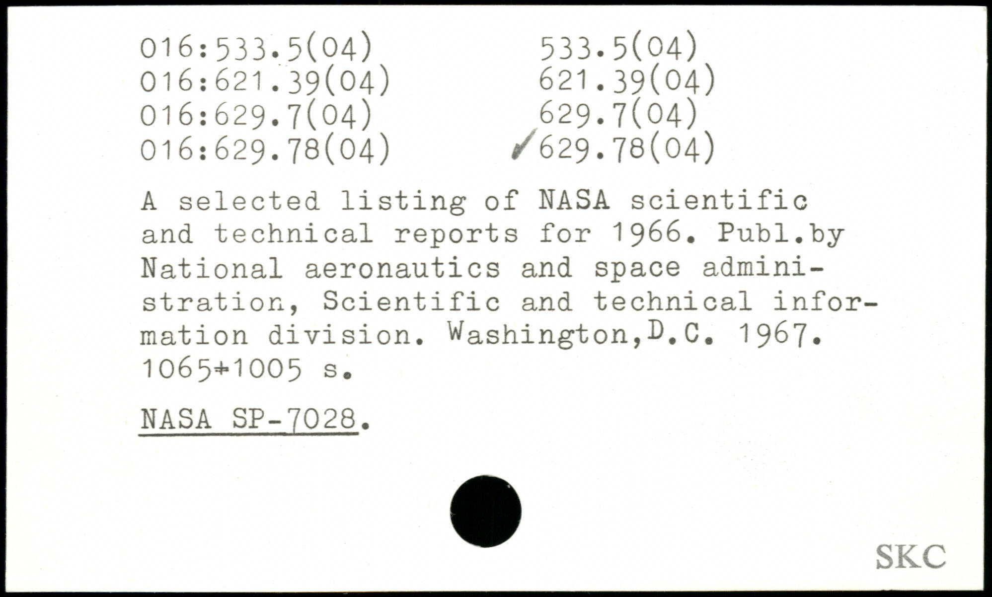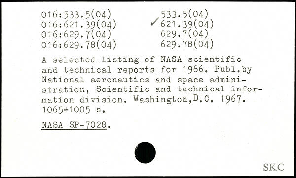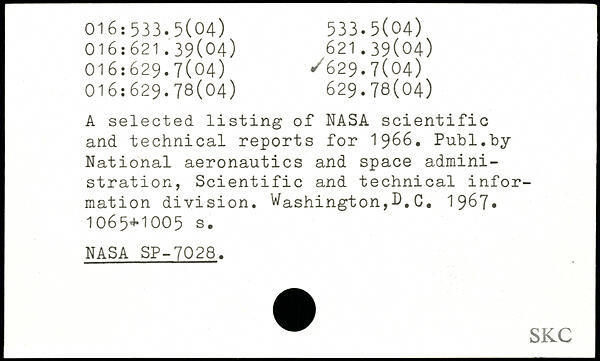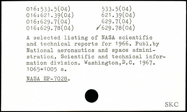 UDK: 016:533.5(04), 016:621.39(04), 621.39(04), 016:629.7(04), 629.7(04), 016:629.78(04), 629.78(04)