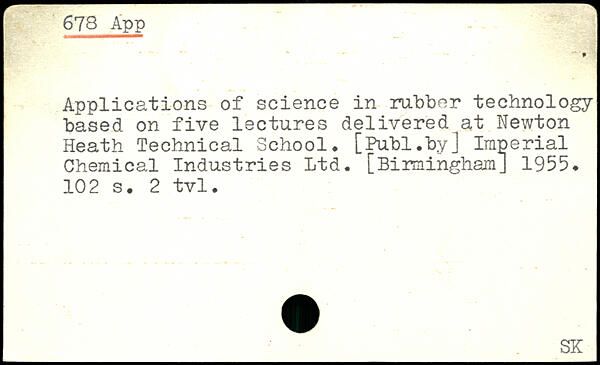 Applications of science in rubber technology based on five lectures delivered at Newton Heath Technical School.