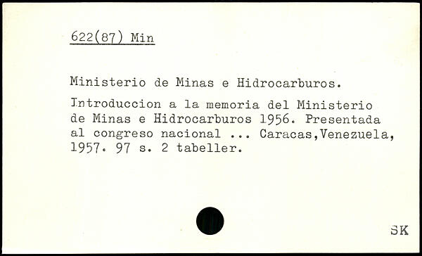 Ministerio de Minas e Hidrocarburos. Introduccion a la memoria del Ministerio de Minas e Hidrocarburos 1956. Presentada al congreso nacional ...
