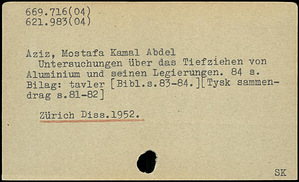 Aziz, Mostafa Kamal Abdel ^. Untersuchungen über das Tiefziehen von Aluminium und seinen Legierungen.