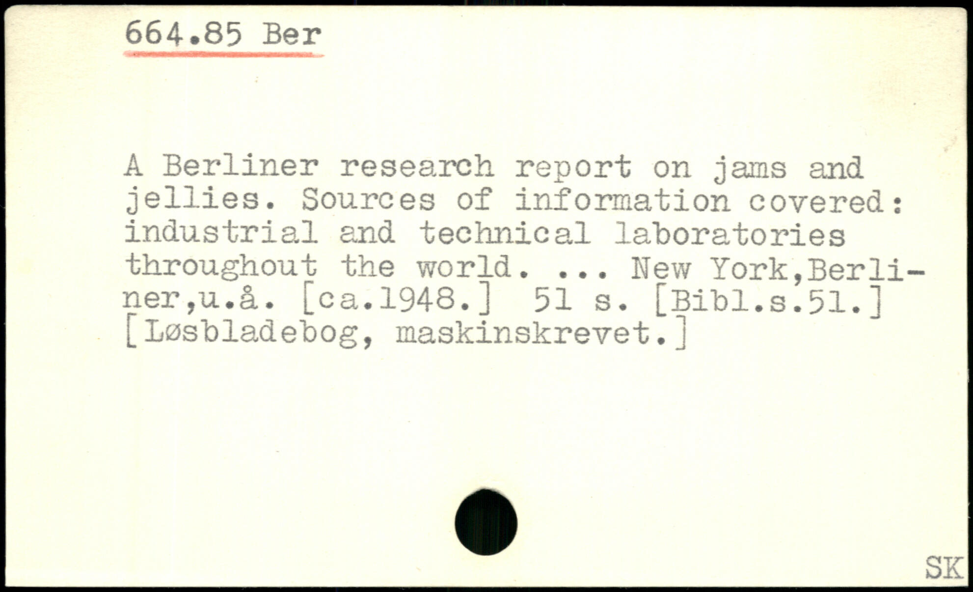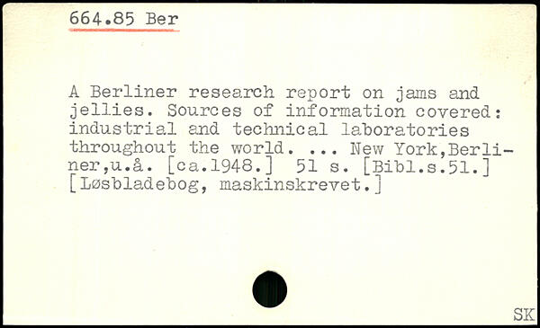 A Berliner research report on jams and jellies. Sources of information covered: industrial and technical laboratories throughout the world. ... New York,Berliner, u.å. [ca.1948.]