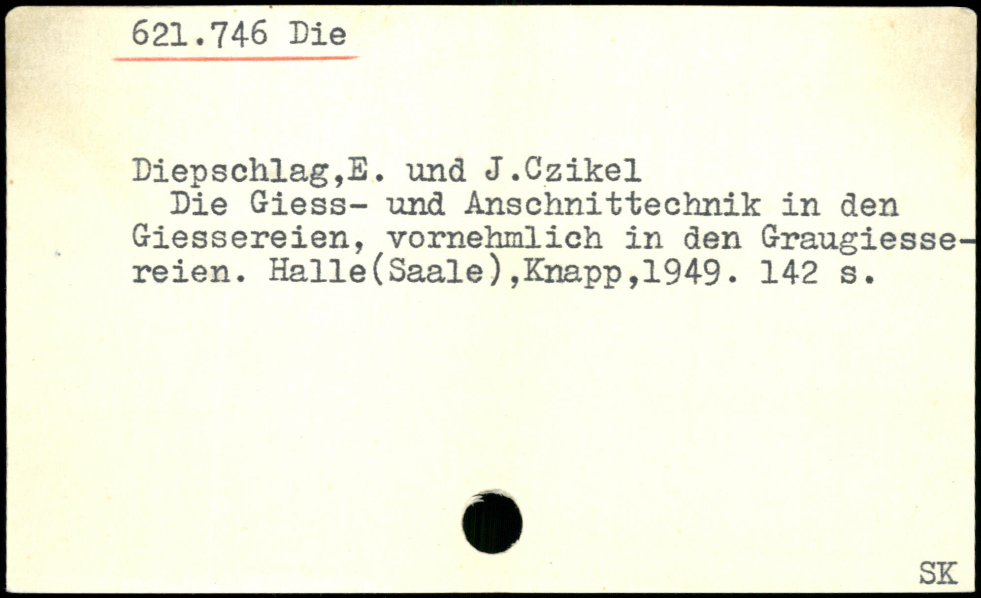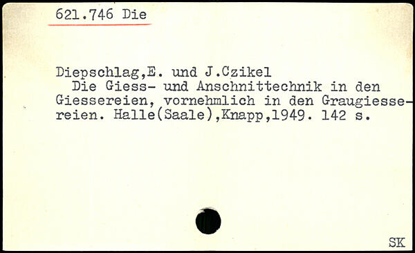 Die Giess- und Anschnittechnik in den Giessereien, vornehmlich in den Graugiesse-reien. Halle(Saale),Knapp,1949.