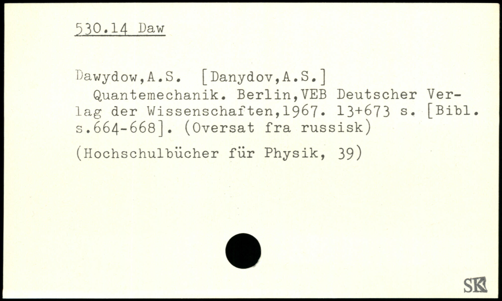 Dawydow,A.S. [Danydov,A.S,] Quantemechanik. Berlin,VEB Deutscher Verlag der Wissenschaften,1967.