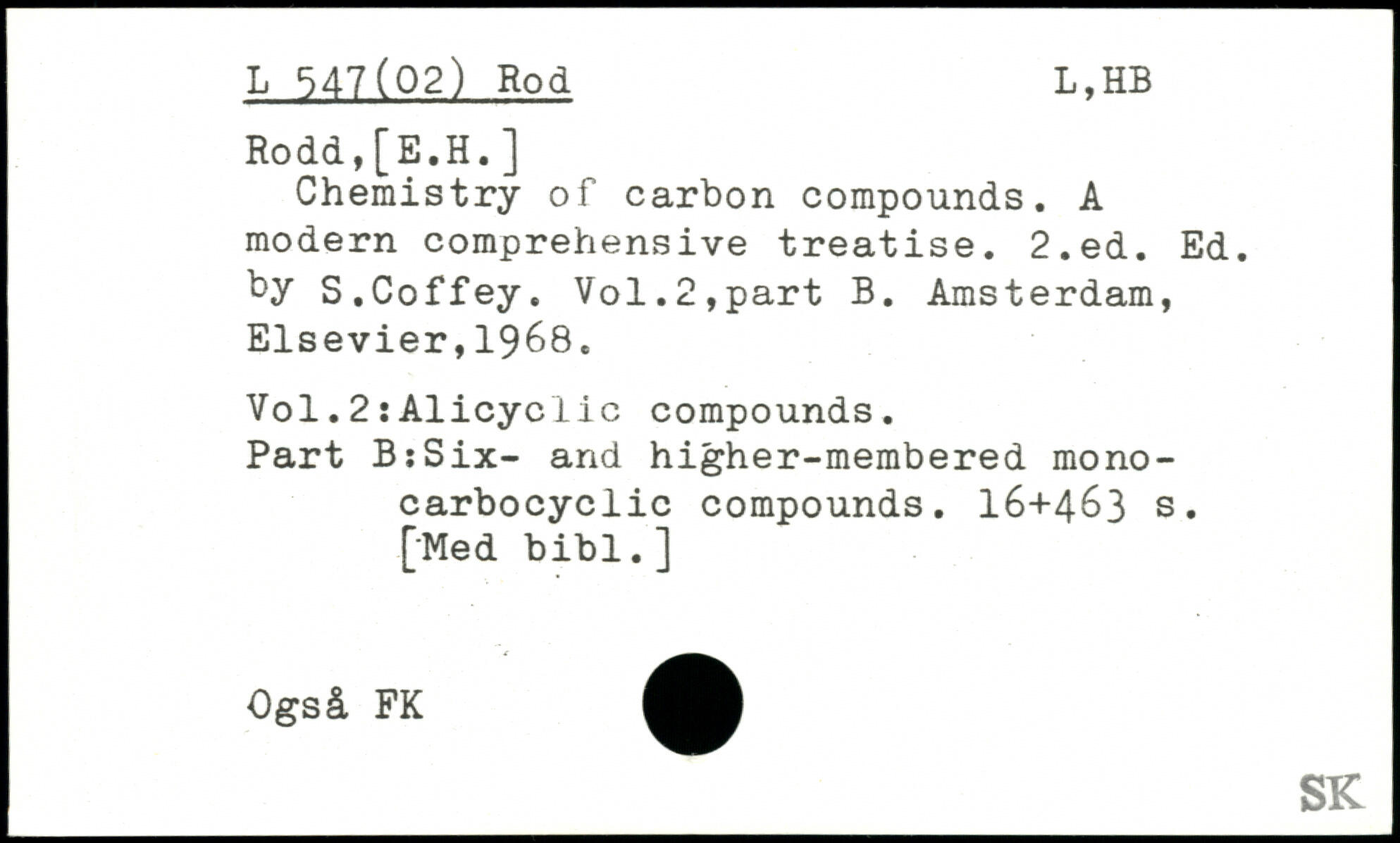 Chemistry of carbon compounds. A modern comprehensive treatise.