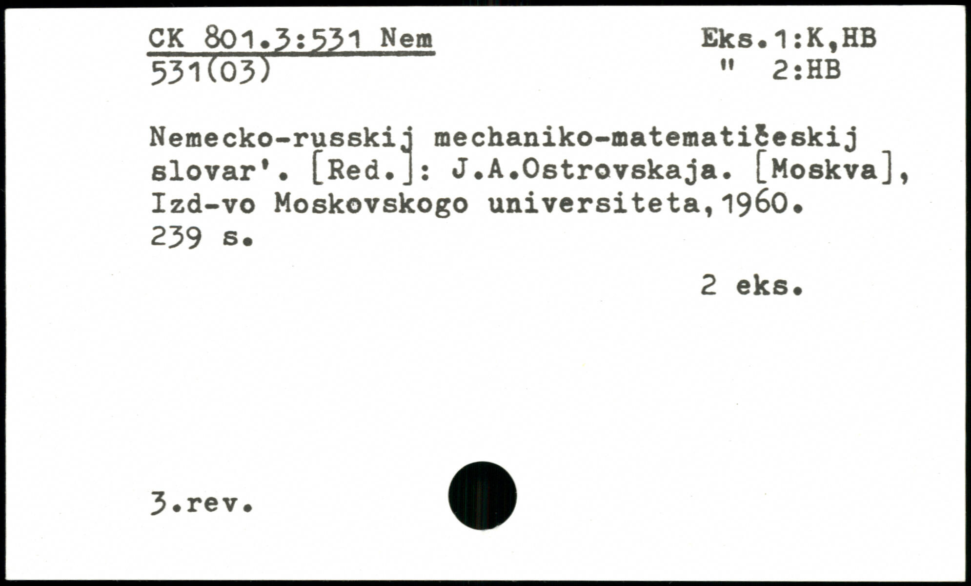 Nemecko-russkij mechaniko-matematifceskij slovar.. [Red.]: J.A.Ostrovskaja. [Moskva], Izd-vo Moskovskogo universiteta,1960.